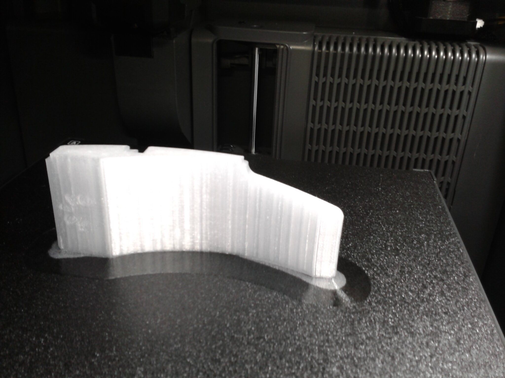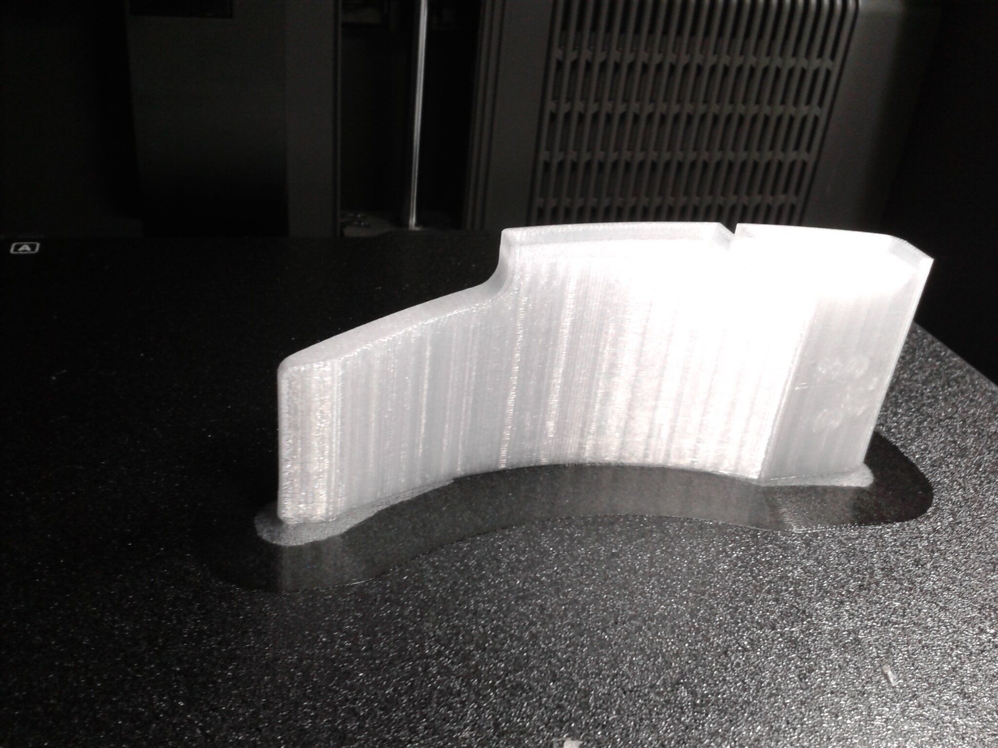 Salut, Quelques jours sont passés depuis le dernier retour, mais à part aujourd'hui où la machine s'est reposée (mais pas moi ), elle n'a pas chômé ! Au programme quelques impressions Zmax dont une qui exploite presque le volume max de cette One L. On commence par un petit print tout simple et tout en hauteur, une Venus De Milo. Buse de 0.4mm HF, couches de 0.15mm profil structural, Zmax de 330mm, 160g. Easy. Passons à une autre impression en deux parties, le fameux buste de Dark Vador par Eastman. Première partie le socle, qui est en fait la partie 2, mais gardons le meilleur pour la fin. Buse de 0.6mm HF, couches de 0.2mm profil structural, 260g. Aucun problème non plus, c'est une impression très simple. Et enfin le buste lui-même, déjà un peu plus challenging. Buse de 0.6mm HF, couches de 0.15mm profil structural, 700g et 35h d'impression. Ici le porte-à faux est assez impressionnant avec une surface au sol assez petite, remarquez que j'ai utilisé du Magigoo pour assurer mes arrières, vu la taille et le poids, je ne voulais pas risquer un décrochage sur la dernière heure. Allez on repasse tout ça en revue avec des photos de près. En commençant par la Venus De Milo. Mais d'abord remarquez le support sur pratiquement toute la hauteur, qui a très bien joué son rôle sans tomber. D'ailleurs une fois détaché on obtient un joli Baobab. Détails du visage, c'est parfaitement lisse et brillant, les traces de support sur le menton et le nez sont quasi invisibles. ici on remarque la couture au dessus du nombril. Je me suis maudit d'avoir ENCORE UNE FOIS oublié de cocher l'affichage de la couture dans la prévisualisation. Je l'aurais mise à l'arrière sinon. Je suis à deux doigts de proposer aux devs de cocher cette option par défaut. Mis à part ça, j'ai vraiment poussé sur les reflets pour chercher les défauts, je vois rien. Du coup pas de couture sur le dos mais cet état de surface vraiment excellent et brillant... Zoom sur le socle, malgré la texture irrégulière du sol on ne voit pas trop les layers, c'est globalement excellent. Passons au socle du Vador. C'est la pièce avec la plus grande surface au sol, donc regardons admirons sa première couche, toujours aussi parfaite chez Prusa. Pour rappel ici c'est une buse de 0.6mm. Petite vue sur la grande surface inclinée, les seuls petits "défauts" qu'on voit sont des petits points dans le PLA, c'est propre à ce filament qui a un toucher plutôt rugueux. On distingue peut-être un très très léger ringing à gauche, mais c'est chipoter là. Enfin le tant attendu buste dont on notera qu'il occupe bien l'espace, et avec un très joli porte-à-faux sur l'arrière. J'avoue que j'étais un peu nerveux que ça tienne, mais au moment de décrocher la pièce, bien que le plateau ait eu le temps de refroidir, en fait la pièce était encore très très bien collée au plateau. Magigoo ou PEI ou les deux, en tout cas la One L a fait son job sans sourciller. Ici le haut de l'impression, j'avais séché la bobine avant, mais j'ai remarqué que ça filochait un peu vers les 2/3 de l'impression, après 24h et 1/2 bobine de passée. En revanche pour une buse de 0.6mm, c'est très très propre. Par contre j'ai remarqué quelque chose, j'ai un effet peau de saumon pas mal visible sur les grandes surfaces lisses, notamment le casque. Je parle de cet effet là que j'ai réussi à accentuer un max avec l'éclairage. A priori on est déjà dans la résolution les facettes du STL. Je n'ai vu cet effet qu'avec la buse de 0.6mm en couches de 0.15mm (buste). En couches de 0.2mm (socle) je le décèle à peine comme du ringing. Avec la buse de 0.4mm en couches de 0.15mm (Venus), c'est absolument lisse mais le modèle a une résolution beaucoup plus élevée. Faut y penser avant de lancer un print à 200 ou 300% de la taille originale. Photo de famille, avec le Hulk qui était le test Zmax de la CORE One+ standard (270mm), la Venus De Milo qui est le Zmax de la One L (330mm), et le buste de Vador qui montre le volume de la One L, ~415mm du bas du buste (hors socle) au sommet du casque (imprimé en diagonal). J'ai mis un benchy que tout le monde connait pour avoir l'échelle de référence. Bon tout ça c'est bien beau, mais ce n'est que du PLA, normalement toutes les machines du marché sont capables de telles impressions. Alors maintenant que j'ai passé deux bons kilos, il est temps de passer à plus technique, c'est là que ça va devenir intéressant. A savoir que le nouveau firmware 6.5.3 final vient de sortir. Je dois d'abord faire quelques vérifications autour de l'Input Shaper, et le re-calibrer selon les recommandations.3 points