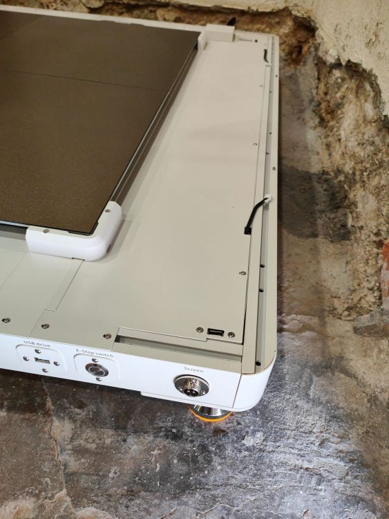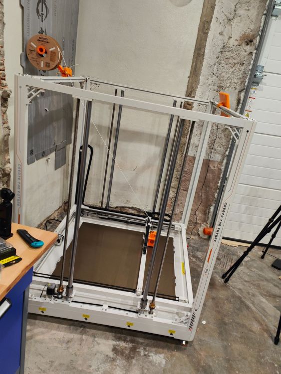 Déjà, elle est énorme. Vraiment, je ne m'attendais pas à ce qu'elle soit aussi massive dans le coffre de la voiture… Bref ! Pour le déballage, rien de particulier, le grand classique à la Bambulab. Je ne vais pas m'étaler sur le sujet, tout est déjà très bien expliqué sur le wiki Bambu. Dans le 1ᵉʳ carton de pièces détachées, nous retrouvons la palette de couleurs, le support de bobine déporté, un "double" sachet de silice, 4 x PTFE de rechange pour l'AMS et enfin, la petite boite d'entretien machine ! (avec une buse de rechange !) Une fois déballée correctement et surtout tranquillement, je vais installer la machine dans mon bureau sur le plan de travail où se trouvent déjà les 2 x P1S. Premier constat : le plan fait 50cm de profondeur, la machine peine à passer dessus. Je suis obligé de tirer le plan et va falloir que je bricole un truc pour la goulotte à purge derrière la machine parce que je suis vraiment limité niveau place. Après avoir tout posé comme il faut, je démarre la machine, je lui laisse faire son étalonnage ~30 min. Ensuite, je branche l’AMS1 (le v2), puis sur la seconde tête, je branche un AMS2 (un gen.v1), j’insère une bobine dans chacun d’eux et je lance la calibration des AMS. La machine vient chercher le filament dans le 1ᵉʳ AMS et l’envoie jusqu’à la tête 1. Puis recule et relance la même étape sur la tête 2. Une fois terminé, nous avons accès à ce petit panneau de contrôle plutôt sympa. Au moment où je vous écris, la machine est en train de faire des mises à jour. Une fois terminé, je ferai une pièce test. Les trucs que je trouve dingues : La taille des axes ! La taille du plateau ! La qualité de la caméra ! La luminosité (d’origine sans kit led tuning) dans le caisson ! l’écran (pour les X1C/A1, je pense qu’il n’y a pas grand changement ; pour moi qui tourne sur P1S, c'est une nouvelle vie !) La suite au prochaine épisode ! Bonne soirée7 points