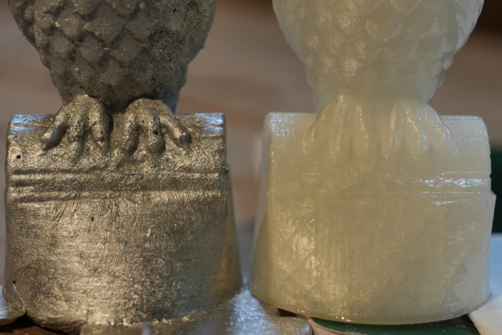 Bonjour à tous, Avec un peu de retard, je partage la pièce que j'ai réalisée cette année aux Journées du Partimoine à Montagney-Servigney. Nous avons fait cette année de la fonderie aluminium, et j'ai eu envie de tester à nouveau le procédé "lost-foam". C'est un procédé dans lequel on créé un modèle en polystyrène, qui est ensuite placé dans un moule avec du sable fluide. Le métal en fusion est coulé directement dessus et prend la place du polystyrène. Ce procédé a été mis au point par Peugeot dans les années 60 pour couler des culasses de moteur, il est encore utilisé aujourd'hui. Un de mes clients, en Franche-Comté, possède une ligne de moulage loast foam pour fabriquer des disques de frein et des tambours de freins de poids lourds en fonte. Je fabrique un modèle, avec une forme volontairement compliquée pour tester les limites du procédé. Je n'ai pas trouvé de quelle façon ajouter des canaux pour faciliter l'évacuation des gaz, donc la pièce sera probablement incomplète. Le but de l'expérience est de connaitre la profondeur limite possible sans canaux. La pièce a été taillée dans un morceau de polystyrène extrudé servant à l'isolation des bâtiments. J'ai utilisé des techniques plus ou moins barbares - d'abord une perceuse à colonne avec un mèche à bouchonner pour faire un gros trou non débouchant assez profond - une scie circulaire de table, avec un support bricolé avec un tube pour réaliser le "tournage" de la partie cylindrique extérieure par sciages successifs - ensuite, une ponceuse oscillante de table pour tailler le pied - enfin, un système à fil chaud pour réaliser les trous Voici les outils utilisés sur place : une caisse en bois pour le moule, un enduit réfractaire avec un pinceau, un couvercle avec un poids (le morceau de rail de chemin de fer) et un maillet pour vibrer le sable La pièce est recouverte de deux couches généreuses d'enduit réfractaire (c'est une mixture à base d'alcool et de poudre d'alumine) : On laisse sécher une bonne demi-heure. La pièce est placée dans le moule qu'on remplit de sable : Le cul de la pièce a été peint en noir pour être bien visible par rapport au sable qui est blanc. C'est indispensable car lors de la coulée, les opérateurs portent une visière de protection, et ils sont aveuglés par l'éclat du métal en fusion. On place le couvercle avec le poids par dessus et on vibre en donnant des coups de maillet : Le moule est prêt pour la coulée. A côté, on peut voir d'autres moules réalisés de façon traditionnelle, avec des modèles en bois qui ont été retirés : La coulée de aluminium liquide : Le polystyrène se consume rapidement en dégageant une fumée épaisse : On laisse refroidir : On démoule. Comme je m'y attendais, la pièce n'est pas complète, mais le résultat est pas mal : De retour chez moi, quelques travaux de nettoyage et de finition. Je dois notamment creuser la pièce au tour à métaux car, même en ayant vibré soigneusement le sable, il n'a pas rempli complétement le fond de la pièce en haut (je rappelle que la pièce est coulée la tête en bas) Même si la pièce est incomplète, elle est en fait très jolie, et même plus jolie que si elle avait été complète. C'est, en quelque sorte, un échec réussi On se rend compte de la finesse des détails qui sont rendus par le procédé, l'état de surface du modèle en polystyrène est très bien rendu. Bien sûr, la pièce à des défauts également. On remarque aussi que j'ai percé la pièce au tour à métaux. Il y a deux raisons : - faciliter l'usinage - permettre le passage de fils électriques pour alimenter un éclairage LED Si on place une petite bougie à l'intérieur, le résultat est vraiment sympa : A bientôt !8 points