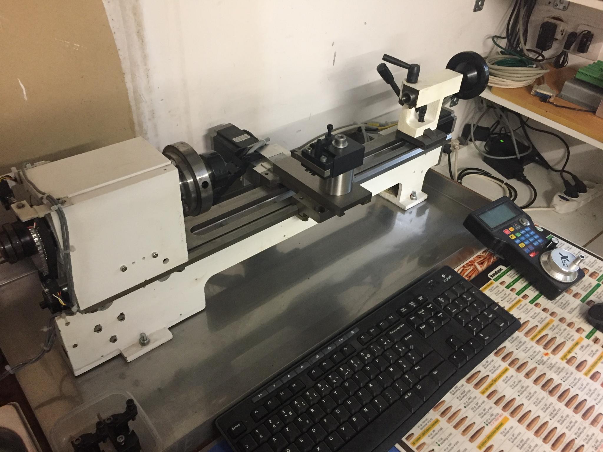 Un petite photo de mon tour "home made" (un SC3 converti en CNC par mes soins)