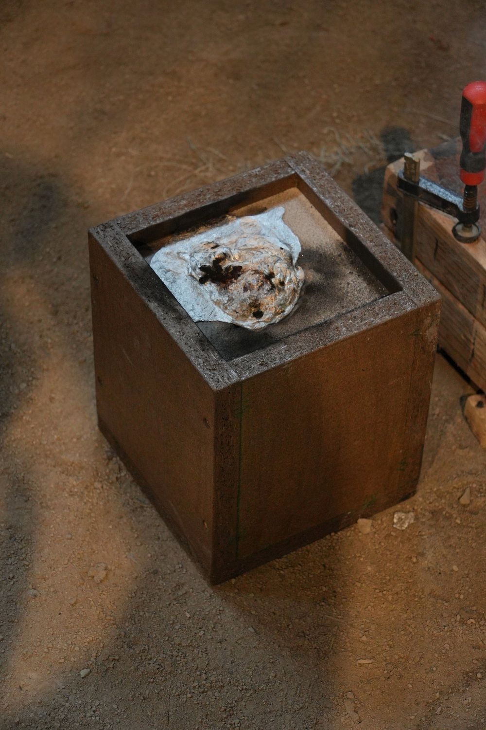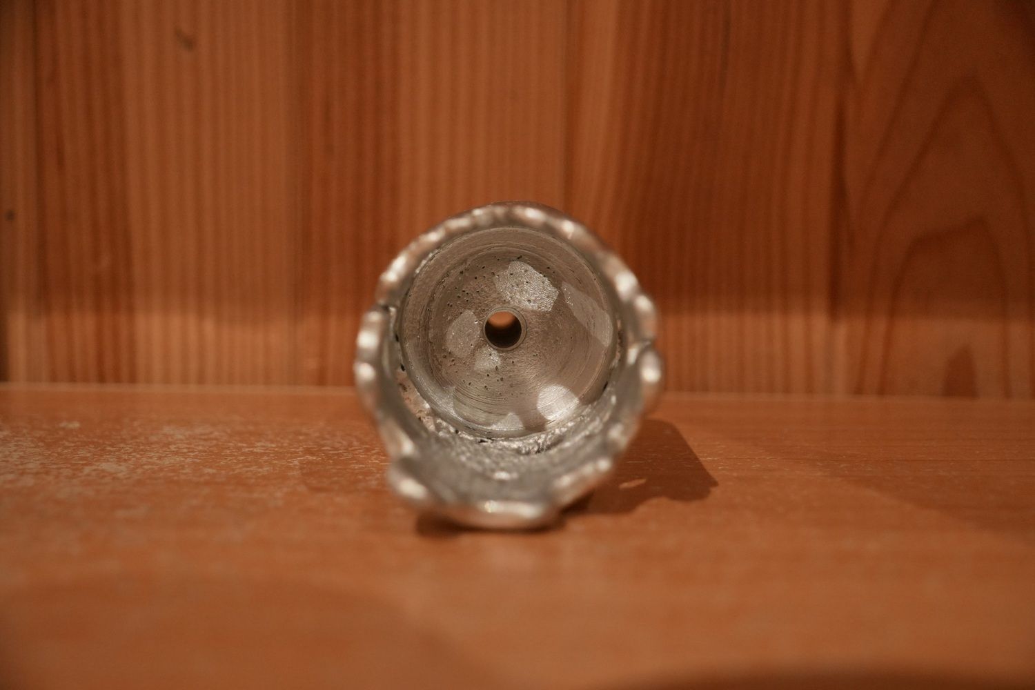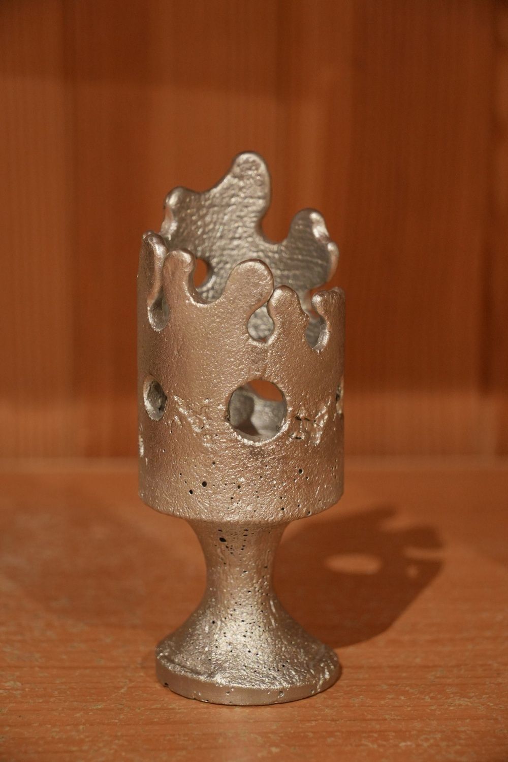 Bonjour à tous, Avec un peu de retard, je partage la pièce que j'ai réalisée cette année aux Journées du Partimoine à Montagney-Servigney. Nous avons fait cette année de la fonderie aluminium, et j'ai eu envie de tester à nouveau le procédé "lost-foam". C'est un procédé dans lequel on créé un modèle en polystyrène, qui est ensuite placé dans un moule avec du sable fluide. Le métal en fusion est coulé directement dessus et prend la place du polystyrène. Ce procédé a été mis au point par Peugeot dans les années 60 pour couler des culasses de moteur, il est encore utilisé aujourd'hui. Un de mes clients, en Franche-Comté, possède une ligne de moulage loast foam pour fabriquer des disques de frein et des tambours de freins de poids lourds en fonte. Je fabrique un modèle, avec une forme volontairement compliquée pour tester les limites du procédé. Je n'ai pas trouvé de quelle façon ajouter des canaux pour faciliter l'évacuation des gaz, donc la pièce sera probablement incomplète. Le but de l'expérience est de connaitre la profondeur limite possible sans canaux. La pièce a été taillée dans un morceau de polystyrène extrudé servant à l'isolation des bâtiments. J'ai utilisé des techniques plus ou moins barbares - d'abord une perceuse à colonne avec un mèche à bouchonner pour faire un gros trou non débouchant assez profond - une scie circulaire de table, avec un support bricolé avec un tube pour réaliser le "tournage" de la partie cylindrique extérieure par sciages successifs - ensuite, une ponceuse oscillante de table pour tailler le pied - enfin, un système à fil chaud pour réaliser les trous Voici les outils utilisés sur place : une caisse en bois pour le moule, un enduit réfractaire avec un pinceau, un couvercle avec un poids (le morceau de rail de chemin de fer) et un maillet pour vibrer le sable La pièce est recouverte de deux couches généreuses d'enduit réfractaire (c'est une mixture à base d'alcool et de poudre d'alumine) : On laisse sécher une bonne demi-heure. La pièce est placée dans le moule qu'on remplit de sable : Le cul de la pièce a été peint en noir pour être bien visible par rapport au sable qui est blanc. C'est indispensable car lors de la coulée, les opérateurs portent une visière de protection, et ils sont aveuglés par l'éclat du métal en fusion. On place le couvercle avec le poids par dessus et on vibre en donnant des coups de maillet : Le moule est prêt pour la coulée. A côté, on peut voir d'autres moules réalisés de façon traditionnelle, avec des modèles en bois qui ont été retirés : La coulée de aluminium liquide : Le polystyrène se consume rapidement en dégageant une fumée épaisse : On laisse refroidir : On démoule. Comme je m'y attendais, la pièce n'est pas complète, mais le résultat est pas mal : De retour chez moi, quelques travaux de nettoyage et de finition. Je dois notamment creuser la pièce au tour à métaux car, même en ayant vibré soigneusement le sable, il n'a pas rempli complétement le fond de la pièce en haut (je rappelle que la pièce est coulée la tête en bas) Même si la pièce est incomplète, elle est en fait très jolie, et même plus jolie que si elle avait été complète. C'est, en quelque sorte, un échec réussi On se rend compte de la finesse des détails qui sont rendus par le procédé, l'état de surface du modèle en polystyrène est très bien rendu. Bien sûr, la pièce à des défauts également. On remarque aussi que j'ai percé la pièce au tour à métaux. Il y a deux raisons : - faciliter l'usinage - permettre le passage de fils électriques pour alimenter un éclairage LED Si on place une petite bougie à l'intérieur, le résultat est vraiment sympa : A bientôt !