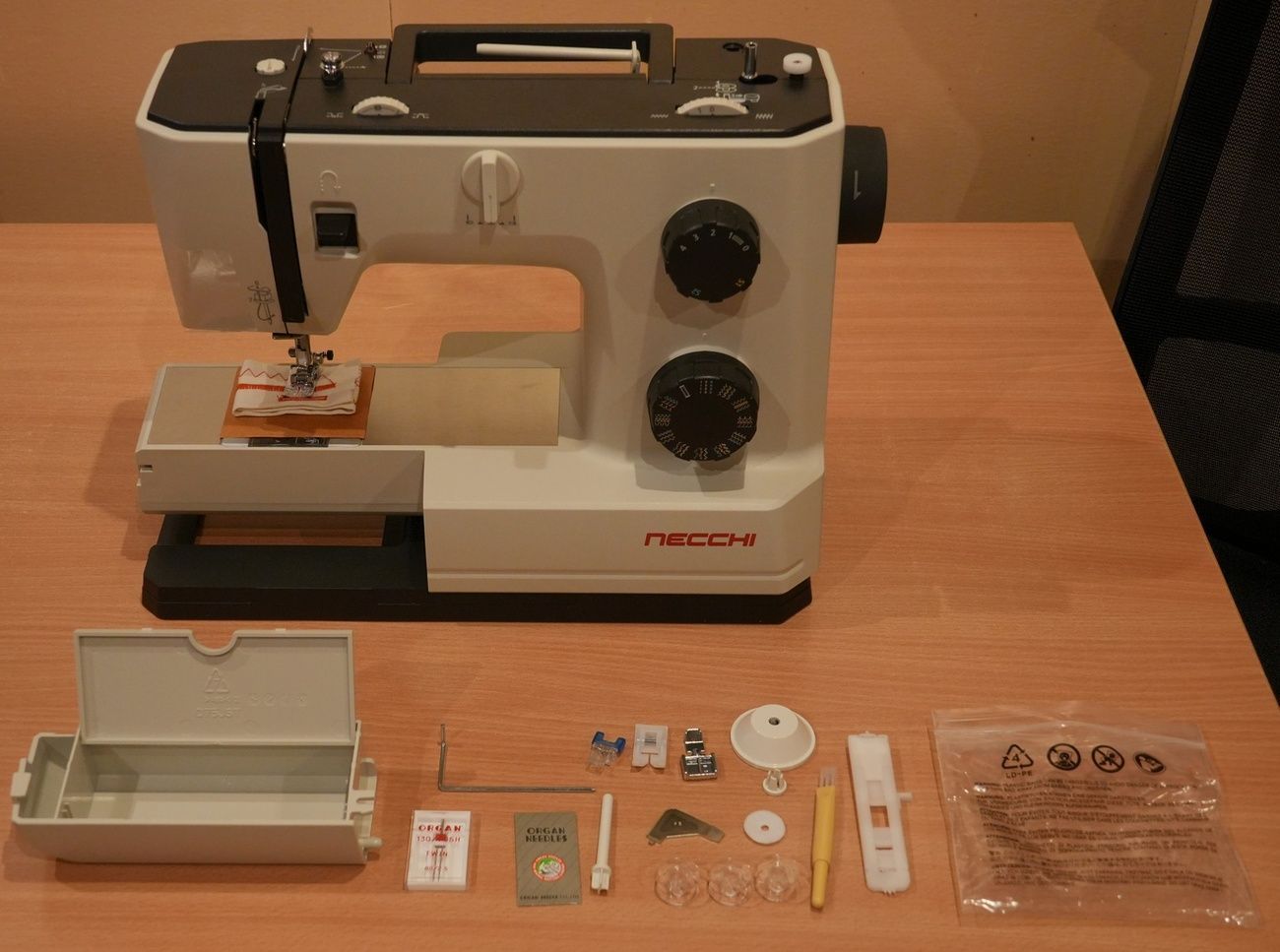 Bonjour à tous, J'avais envie de m'acheter une machine à coudre, pour compléter ma panoplie de bricoleur / maker. Une machine à coudre, c'est utile : - pour réparer des vêtements - pour fabriquer des déguisements (carnaval, cosplay) - pour habiller des figurines imprimées en 3D avec du vrai tissu - pour faire des rideaux, des tissus d'ameublement pour la maison ou la voiture - pour adapter des sacoches (photo, randonnée, ceintures à outil...) Suivant les conseils du forum, j'ai acheté une machine à coudre mécanique de marque Necchi, la Q132A. Un peu occupé en ce moment, la machine attendait dans son carton depuis le mois de juillet J'ai pu enfin la tester. Une précision : je n'ai jamais utilisé de machine à coudre. Je connais toutefois le principe de fonctionnement ; certains de mes clients ont des machines à coudre industrielles sur lesquelles je suis intervenu pour des questions liées à l'ergonomie et la sécurité au travail. Ces machines servent à fabriquer des sièges automobile ou des matelas. Certaines sont à commande numérique et entièrement automatiques, d'autres sont manuelles et utilisées par des ouvrières qualifiées. Je connais donc aussi les dangers liés à ces machines. Ayant l'habitude d'utiliser des machines à bois - avec quelques frayeurs au compteur - j'avais une certaine appréhension sur ce nouveau domaine. Première étape : RTFM : lire le mode d'emploi en entier. Cribbio! il manuale è in italiano Alors que la machine a été acheté sur le site DARTY français, ce n'est pas conforme hein, vous allez vous prendre un scud de Que Choisir Je télécharge la VF et je l'imprime avec une reliure spirale. Ce sera plus pratique, le manuel restera ouvert à la bonne page. Je n'ai pas coupé les marges, mais cela offre un espace confortable sur chaque page pour écrire des notes. Bien que mécanique, la machine possède beaucoup de fonctions et d'accessoires. La machine sera polyvalente, mais j'ai peur que la prise en main soit longue. Je dois me procurer des consommables. Le mode d'emploi indique quels fils et quelles aiguilles utiliser avec quels tissus. Grâce à Google on comprend qu'il faut prendre du fil polyester si on ne veut pas trop de problèmes. Avec mes machines à bois, ma fraiseuse et mon imprimante 3D, j'ai appris une chose : il faut des consommables de qualité, surtout quand on débute ! J'achète donc du fil GUTERMANN et des aiguilles SCHMETZ : C'est pas donné par rapport aux autres produits sur Amazon. Mais c'est le prix de la tranquillité. De plus, les assortiments de fils Gutermann ont des couleurs "utiles", c'est à dire qui correspondent aux couleurs des vêtements "normaux" Car dans un lot de fil aux couleurs arc-en-ciel, le rose ou le jaune fluo risquent de ne jamais être utilisé Je reprends le mode d'emploi, et suit les étapes dans l'ordre. Le mode d'emploi est bien rédigé, les illustrations sont claires, les différentes manipulations sont faciles à réaliser, même avec mes doigts d'homme et ma vue qui baisse La machine est fournie avec une housse de protection en tissu, sachant que le grand sac en plastique pouvait aussi jouer ce rôle : Voilà la bête : Une partie se démonte pour coudre des manches, cette partie est aussi une petite boite remplie d'accessoires : Les accessoires permettent de faire de nombreuses coutures, y compris les trous de boutonnière, la couture des boutons et des fermetures Eclair. Il y a aussi un coupe fil et des canettes La machine est aussi fournie avec une table, pratique pour travailler les grandes pièces de tissus : Il y a des boutons et leviers de réglages de tous les côtés, c'est normal pour une machine mécanique car ces pièces doivent être à l'endroit où elles agissent sur le mécanisme : La seule partie électronique est le variateur de vitesse qui doit se trouver dans la pédale, qui reçoit également le câble secteur : Avec cette machine, on ne sera pas emmerdé avec des pannes de cartes électroniques (une difficulté majeure y compris sur les machines industrielles) Une remarque sur la sécurité : la pédale n'a pas de capot, et elle a un peu de mal à ne pas glisser du sol. Je fabriquerais un support de pédale avec un capot et une fixation pour l'attacher aux pieds de la table sur laquelle la machine à coudre est posée. La machine possède un éclairage LED bien conçu, très utile pour bien voir ce que l'on fait : Bonne nouvelle : la machine possède un accessoire automatique pour remplir la canette avec le fil que l'on utilise pour l'endroit. Cela évite de devoir acheter des canettes de fil, et cela permet d'avoir exactement le même fil pour l'endroit et l'envers (diamètre, matériaux et couleur du même bain) Rien n'empêche de mettre un fil de couleur différent sur la canette, cela permet de mieux examiner la couture pour ajuster les réglages. C'est d'ailleurs ce qui a été fait avec l'échantillon de tissu qui a servi à tester la machine en usine : Le fil de cannette est jaune, le fil de l'endroit en rouge ; photo de l'envers : et de l'endroit : Prochaine étape : installer la canette ; aucune difficulté, tout est bien expliqué dans le manuel ; le capot en plastique est juste un petit peu chiant à remettre Maintenant, il faut passer le fil de l'endroit dans la machine, et le passer à travers le chas de l'aiguille. C'est le genre de truc super pénible à faire... ... mais là aussi, la machine possède un accessoire bien conçu qui permet de passer le fil dans le chas facilement et du premier coup : Vient le moment fatidique : la couture. je prends un chiffon pour les tests (une manche d'un ancien pyjama en coton) C'est facile, la machine coud sans problème. Avec la pédale, on peut vraiment ajuster la vitesse, il n'y a quasiment pas d'inertie, on peut ralentir et même arrêter à n'importe quel moment. Il est possible de coudre au ralenti. On peut aussi tourner manuellement le volant à droite pour actionner le mécanisme. Le système 