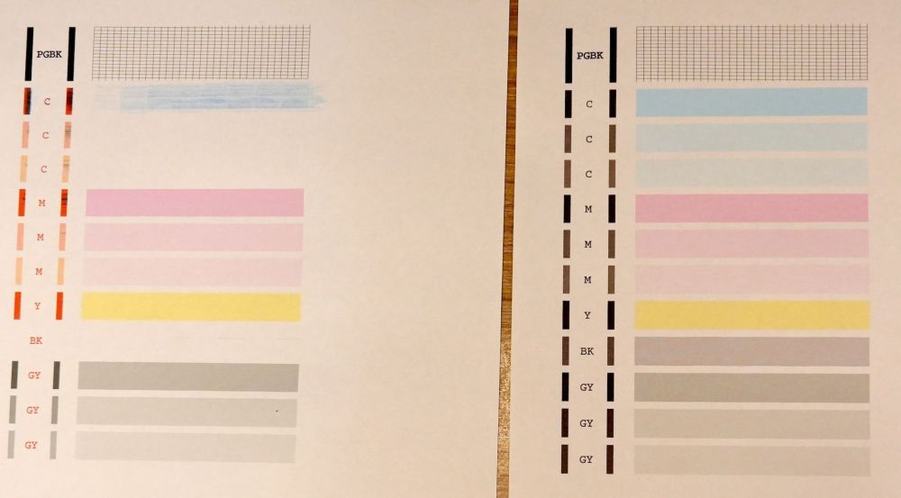 Bonjour à tous, J'ai encore mon imprimante jet d'encre Canon MG6150 Elle a 14 ans, elle fonctionne encore très bien même avec Windows 11 J'avais du faire une manip l'an dernier car la limite de durée de vie de l'éponge de nettoyage d'encre était atteinte Je ne m'en sert pas très souvent et les buses étaient bien bouchées. Je démonte la buse (cela se fait en 30 secondes) et je la nettoie avec de l'alcool isopropylique (d'abord avec un chiffon, puis ensuite je fais un peu couler d'alcool iso dedans, au-dessus d'une poubelle) Attention à ne pas tacher vos vêtements, vos meubles et le sol durant la manip, portez des gants aussi J'essuie, je remonte le tout avec les cartouches, et c'est repartit comme en 40 Le résultat, avant / après : A bientôt