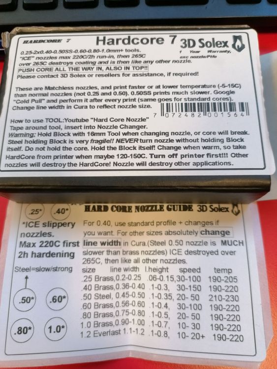 D'accord, je vous donne la référence du printcore quand même pour que vous puissiez jeter un coup d'oeil. Printecore 7 => https://3dsolex.com/product/printcore-s5/ Je vais regarder pour imprimer une tour de température alors ! Le tube PTFE s'arrête bien avant la tête d'extrusion pour le coup, le fil est conduit à travers une sonde en plastique avant d'arriver dans la partie chauffante, ou le heatbreak, comme vous le dites donc hormis un encrassement dû a des petites particules qui pourraient s'accumuler à l'intérieur, il ne risque pas de fondre ^^ Si ça peut intéresser, voici les recommandations des plages de températures des buses par le constructeur. -