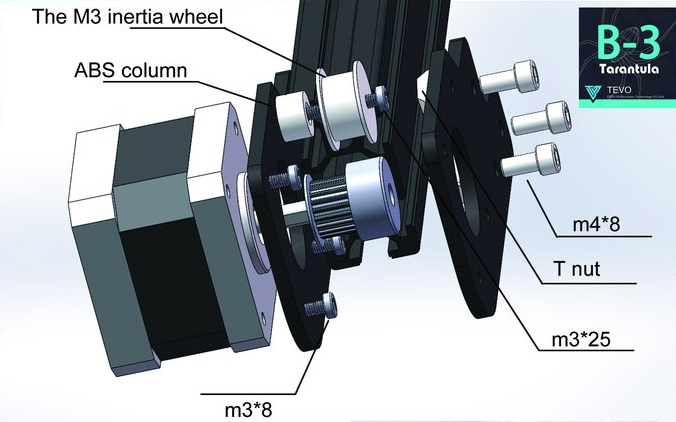 Je viens d’acquérir une Tarantula nécessitant quelques réparations: le support du moteur d'axe Y est cassé. Les accessoires tenant sur cette plaque ont tous disparus.