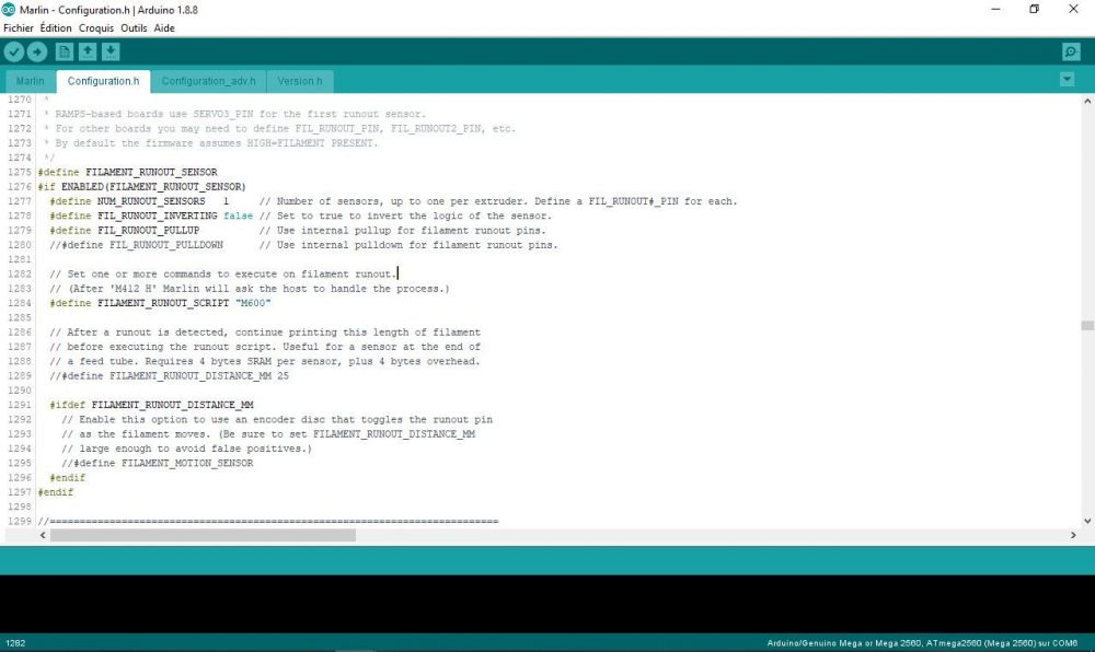 bonjour, j'avoue que j'ai regardé hier soir, mais je n'ai pas trouvé la ligne dont tu me parles ( je ne m'y connais pas trop dans les marlin donc...dur dur quand on débute ) je joins une capture de ce que j'ai comme ligne de code pour le capteur ....