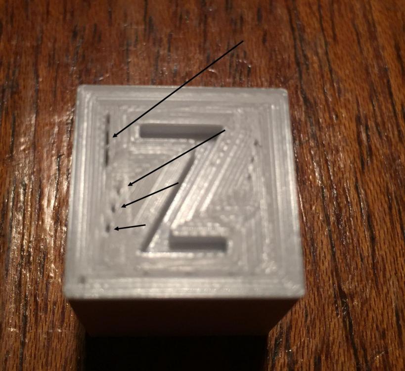 Bonjour, A l'impression du cube, de mémoire en 0.2 ou 0.1 (j'ai pas noté, je suis c**), et à 210°, j'ai qqs trous en Z. J'ai aussi des manques entres deux lignes sur mes tops horizontaux de pièces planes (photo exemple sur un support de boitier). Si vous avez une idée du pourquoi? merci. (photo du cube minable, dsl)