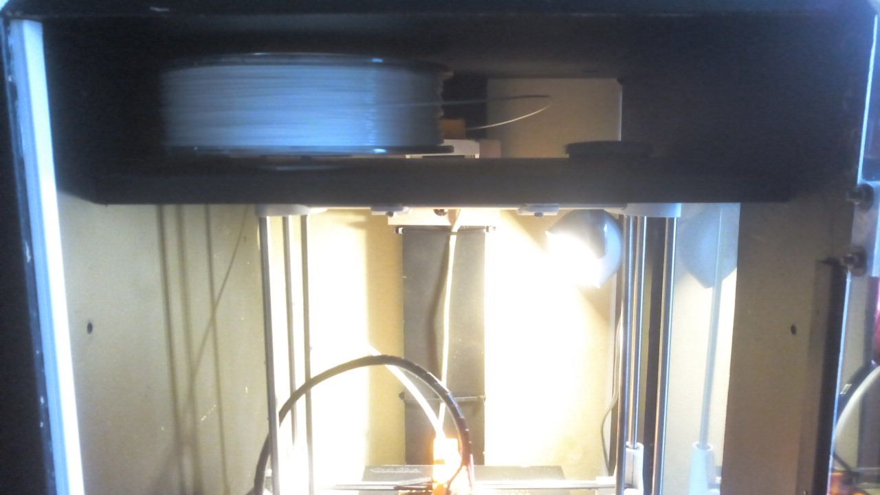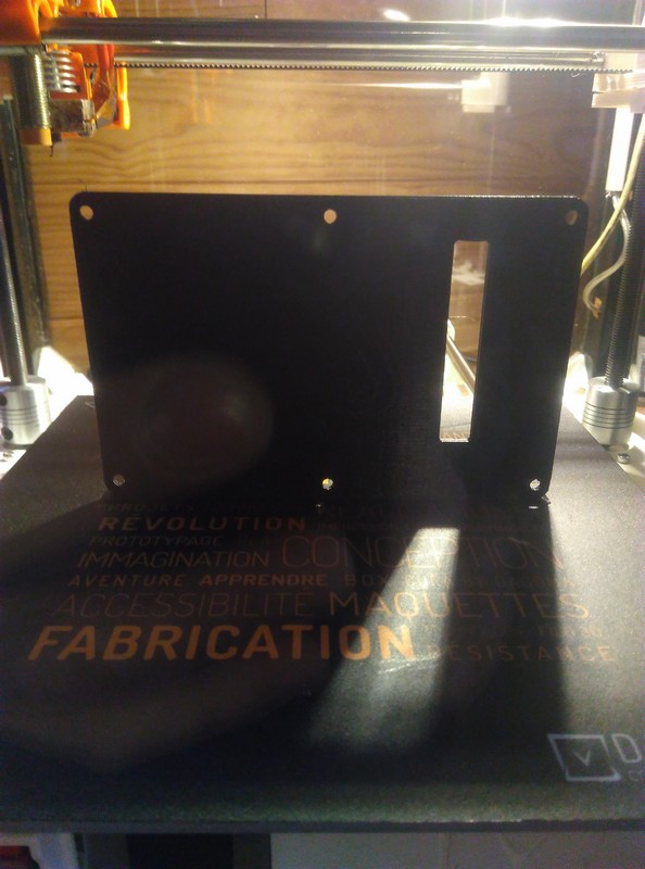 Comme la mode est au caisson j'ai donc fait le mien et je n'ai pas utilisé la fameuse table Ikéa J'ai fait dans la récup et j'ai donc recycler un vieux caisson de bureau, j'ai inverser le tiroir d'origine qui est maintenant en bas, le seul achat a été le plexi, tout le reste est de la récup et...De l'impression 3D évidemment Les charnières de la porte ont été imprimées et devinez ce qui m'a servi d'axe...Un morceau de PLA...et oui et ça fonctionne parfaitement. Les coins de protection en haut sont imprimés aussi, ceux du bas proviennent d'un ancien caisson d'enceinte. Pour absorber les vibrations j'ai utilisé ce que j'avais à savoir de la sous couche à parquet et c'est relativement efficace. Vous aurez sans doute remarqué une petite modif sur la Disco puisque l'extrudeur et son moteur ont été démontés pour être placé au plus près de la bobine qui se trouve au dessus de l'imprimante. j'ai refait un support assez basique pour pouvoir fixer l'extrudeur un peu on l'on veut. j'ai fait dans le simple mais dans le solide car ce caisson doit pouvoir être déplacé, emmené en voiture...etc , il reste encore le fond du caisson à fixer et une petite poignée avec un système de fermeture pour la porte et peut être quelques led. Je vous met à dispo les fichiers pour le support et les charnières si ça vous interesse http://www.thingiverse.com/thing:1383082 http://www.thingiverse.com/thing:1383058