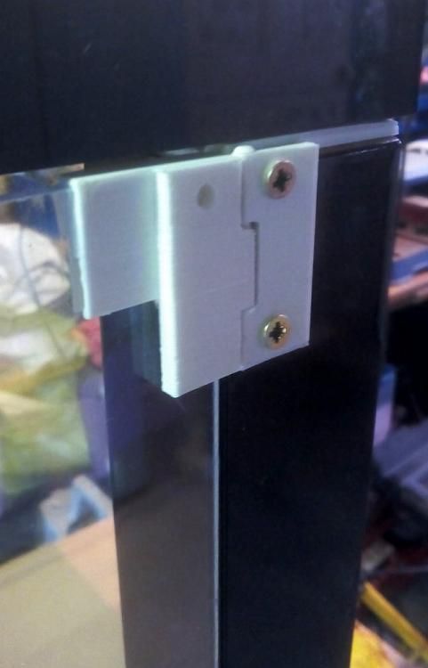 J'ai refait les charnières de porte de mon caisson pour que celles ci n'aient plus besoin de vis (coté plexi) mais simplement d'être collées et je dois dire que ça marche impeccablement Remarquez que l'axe est un simple morceau de PLA. Le plexi fait 4mm d'épaisseur. Si ça vous interesse, servez vous ;-) http://www.thingiverse.com/thing:1426452
