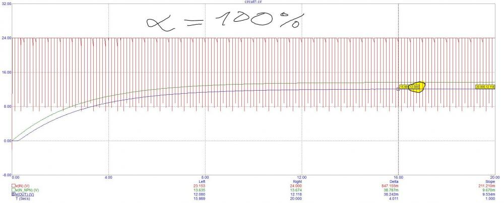 9. Aujourd'hui j'ai fais les tests sur protoboard avec GBF (générateur basse fréquence) et oscillo avec charge de 300Ω et les tests sont très concluant, mon gbf ne montant qu'a 21V j ai fais les tests (photos) a 12v ( [-2;12V] ) et on retrouve bien les valeurs souhaité : A 100% rapport cyclique : 6V en sortie (12V avec l'entrée a 24V) A 0% : 0V en sortie. La variation n'est pas parfaitement linéaire entre les 2 : (ex a 50% on a 4,2V => 8,4V avec l'entrée a 24V) mais ça me convient très bien. Je précise que j ai testé a 21V max pour le PWM(max gbf) et 24V pour l alim transistor ensuite et aucun problème, pas de chauffe des transistors et la sortie est toujours conforme a la simulation ( faites sur Microcap si interressé) Donc voilà pour ceux qui ont envie de se bricoler un truc eux même, le résultat ne sera peut être pas aussi parfait qu'avec la solution de @Janpolanton mais c'est une autre alternative. Je voulais vous partager ceci dans le but de vous encourager a ne pas hésiter a faire cette conversion car quand on lit les 30 pages de se topic on perd vite espoir (même s'il est très riche d'idée) J'editerai ce post dès que le module sera monté sur l imprimante pour vous confirmer son bon fonctionnement.