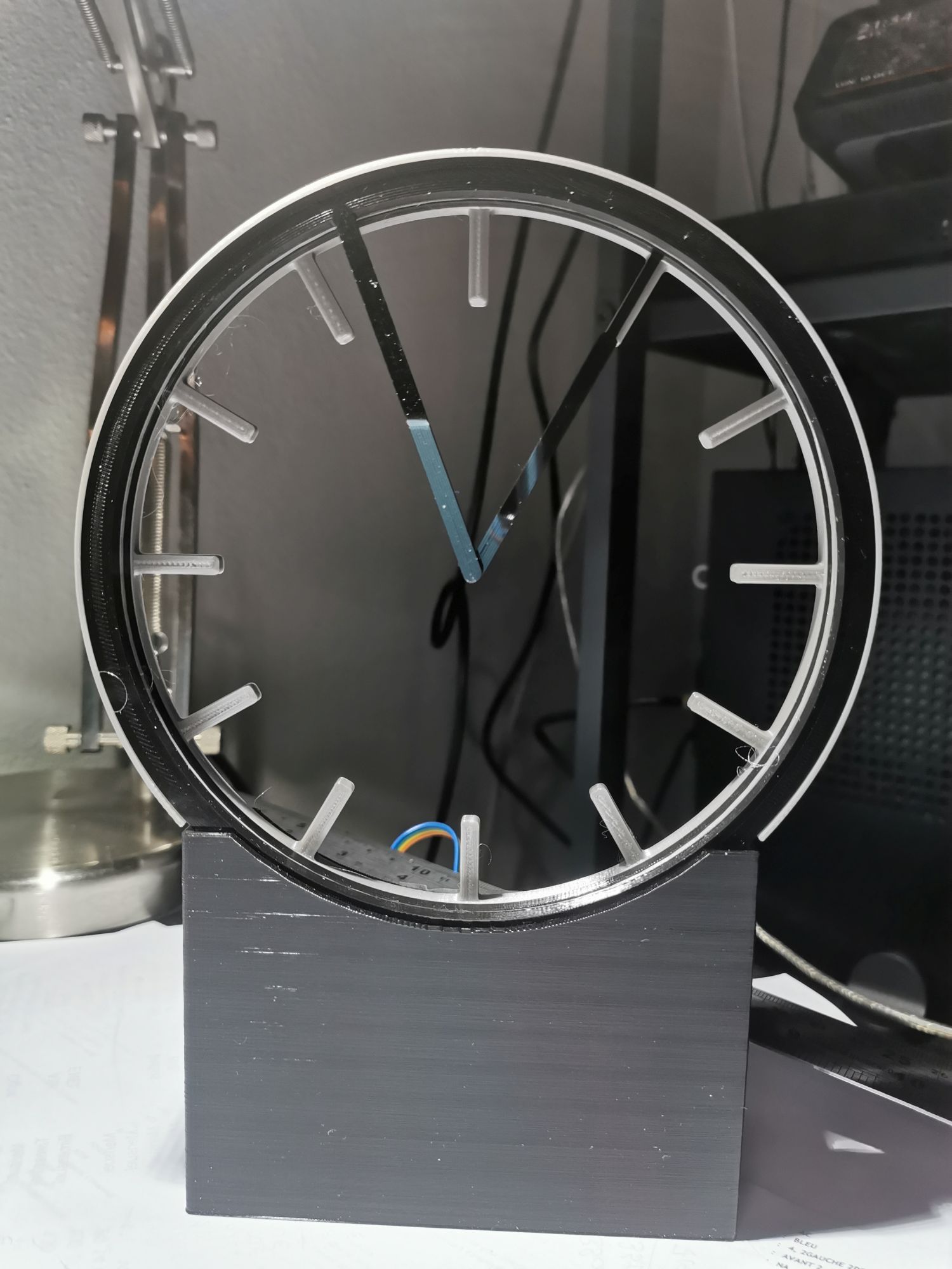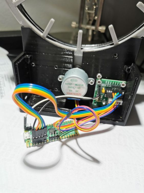 Bonjour, Je fais appel à tous les électroniciens du forum, et je sais qu'il y en a tant et de talentueux, pour résoudre un problème que je rencontre pour une de mes impressions 3D. Je sais que ce n'est pas lié à l'électronique d'une imprimante, mais j'essaie quand même car je fais confiance aux membres de ce forum. J'ai imprimé cette horloge : https://www.thingiverse.com/thing:4840471 qui a un rendu superbe ; la base n'est pas celle-là, mais ce n'est pas le sujet. Pour la faire tourner, j'utilise, comme prévu par l'auteur, une carte Raspberry Pi Pico et un moteur 28byj-48 et sa carte. Tout fonctionne aux petits oignons... ou presque. Car au bout d'une heure de fonctionnement, le moteur pas à pas décroche, alors que les pièces imprimées ne bloquent pas. Le problème c'est que je ne suis pas du tout compétente en électronique, c'est même la première fois que j'utilise une carte Raspberry. Mais elle a été bien préparée, avec implémentation de Mycropython comme préconisé, et de toute manière, pendant une heure elle a fonctionné correctement. Elle est alimentée en 5V, 1A. J'avais auparavant fait les branchements du modèle que j'avais suivi : https://www.thingiverse.com/thing:4947971, mais là le moteur décrochait au bout de 5 minutes et c'était beaucoup plus bruyant. J'avais à ce moment essayé avec un autre moteur ; cela n'avait rien changé, il semble que ça ne vienne pas de là. J'ai vu sur internet que ces moteurs pas à pas supportaient moyen une alimentation par une carte, qu'il valait mieux les alimenter directement ; est-ce que ce serait la solution à mon problème ? Et si oui, comment dois-je faire ? D'un autre côté, il y a pas mal de personnes qui ont réalisé cette horloge et qui ne relatent pas ce genre de problème, donc j'ai peut-être loupé quelque chose mais je ne vois pas quoi. Vous allez me dire que je pourrais demander directement à l'auteur de l'objet ; mais il n'a plus donné signe de vie depuis quasi un an sur le site, donc je le sens moyen... Ci-dessous le fichier .py, les branchements que j'ai faits en suivant les instructions. Sur les photos, les pins non utilisées sont celles utilisées pour le premier branchement ; elles étaient bien isolées lors des essais suivants. J'espère que vous pourrez m'aider, car je la trouve vraiment sympa... et en plus j'en ai besoin. En tout cas un grand merci déjà pour m'avoir lue. pico-hollow-clock.py pico-hollowclock-instructions.pdf