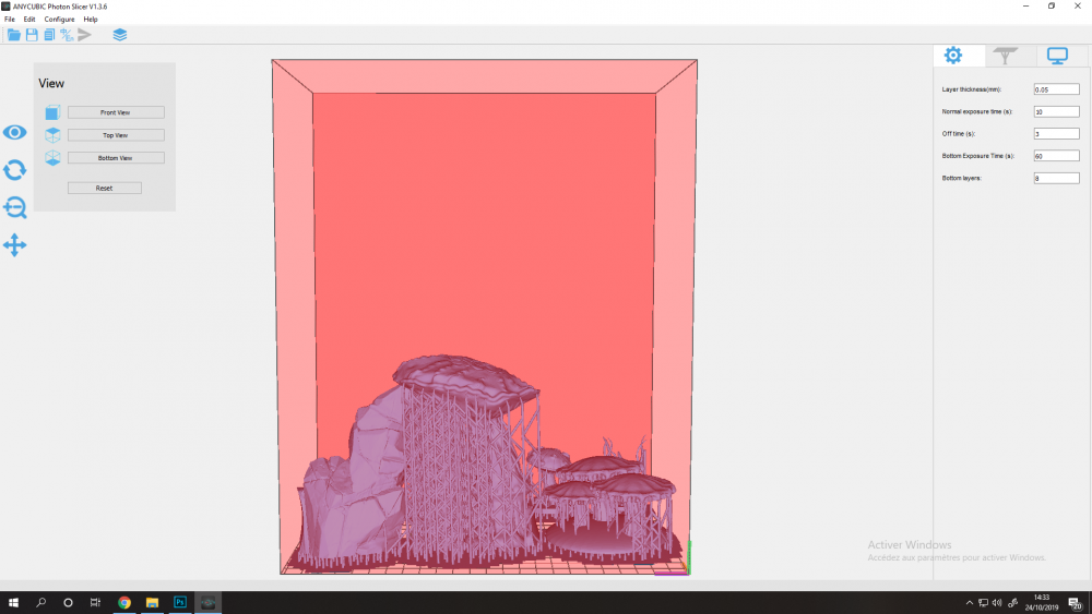 Ps: J'ai changé un peu la taille de mes pièces sur une nouvelle impression (raté aussi) pour éviter que les parois passent au rouge même si je ne pensais pas que le problème vienne delà étant donné que ce ne sont pas les pièces qui dépassent mais seulement le trop plein de résine lié aux supports.