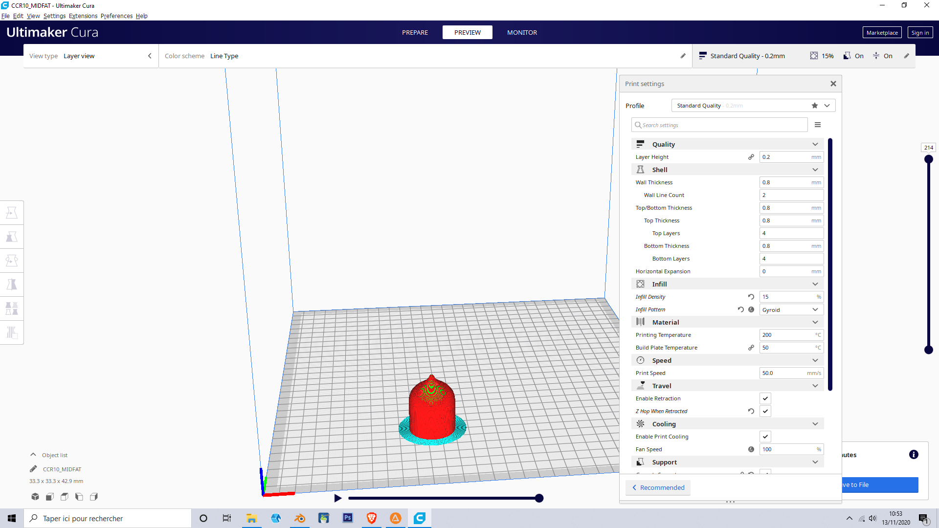 6. Oui j'ai essayé avec plusieurs filaments de deux marques différentes (arianplast et filo3D,) et en changement aussi la température de la buse. Je me suis aperçu sur ma dagoma qu'effectivement le filament Arianeplast était problématique (coup dur parce que j'en ai un bon stock!), j'ai du Chromatik que je n'ai pas encore testé sur ma Creality je vais tenter le coup demain ! J'ai fais ces derniers test avec des fichiers qui étaient sur ma carte sd donc j'ai plus que le gcode . Je vais repréparer un fichier pour ce nouveau test et vous mettre les parametres du slicer que j'aurai utilisés. Même si normalement ces fichiers ont déjà été imprimés et avaient à l'époque fonctionnés sans problème. Je suis preneuse si vous avez d'autres pistes!