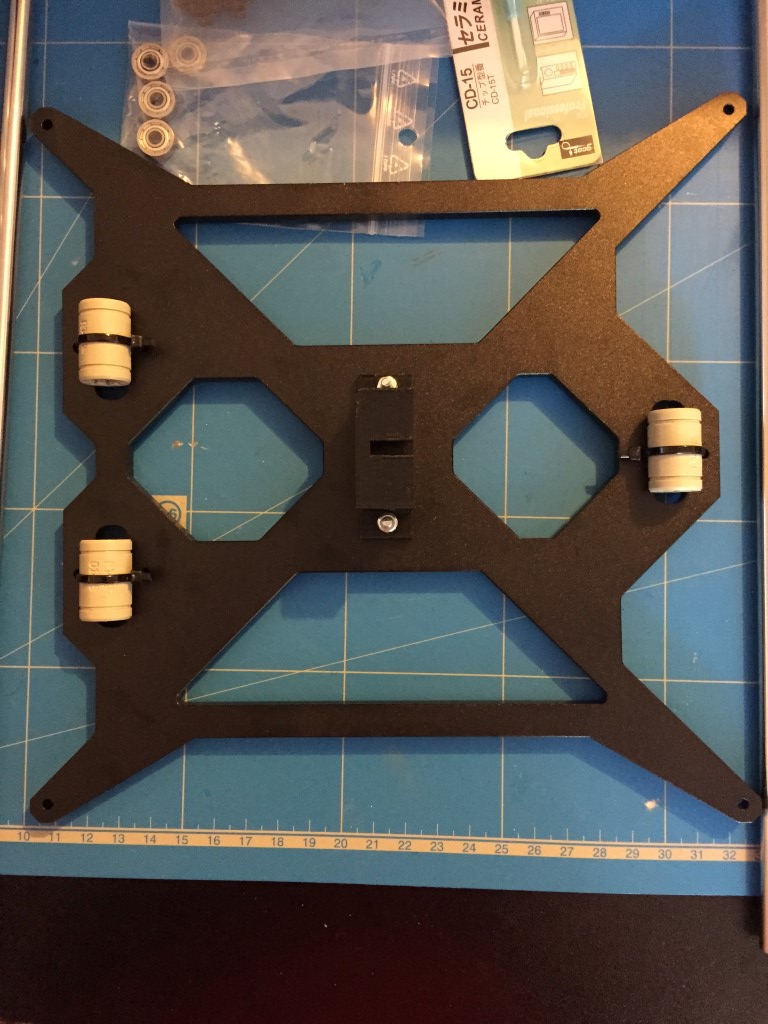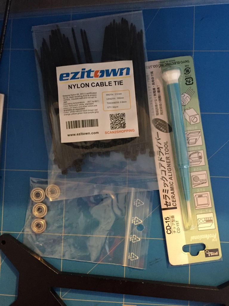 Rebonjour les gens !!! Déjà, je suis super surpris et content du taux de fréquentation de mon sujet. MERCI aux gens, même aux curieux de se donner la peine de regarder ou de répondre aux posts, surtout d’y répondre :). Donc depuis un petit moment je n’avais rien posté par flemme, et surtout, car j’ai testé beaucoup de choses pour arriver à un rendu qui me convenait. Je reprends du coup, là où j’en étais. J’ai reçu donc le retour SAV, très rapidement d’ailleurs, j’en rajoute une couche, mais vraiment : « BRAVO à l’équipe d’Emotion-Tech, sur tous les points c’est parfait !!!! » J’avais du coup rajouté au retour SAV, une commande : * De collier plastique : https://www.reprap-france.com/produit/1234568320-50-colliers-de-serrage-2-5x100mm *D’un tournevis céramique, pour régler mes pilotes moteurs : https://www.reprap-france.com/produit/1234568495-tournevis-plat-en-ceramique-1-5mm *De 4 petits roulements à billes (pour le spool de filament, que j’ai vite changé, parce qu’ il était merdique … et pi c’est tout !!! je reviendrais dessus … ) https://www.reprap-france.com/produit/1234568326-roulement-a-billes-604zz En fait le « Y-carriage » était bien trop petit. Ils m’en ont renvoyé un bon. J’ai donc monté les Igus RJ4P sur celle-ci. -