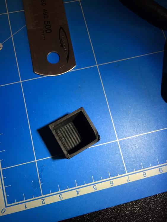 J’ai pris plaisir à tout remonter, rerégler et BAM … Un problème que je n’avais pas eu avant vient me faire bien ch…, genre un peu blasé, mais rapidement curieux de trouver le pourquoi du comment. Mon problème, sur tous les tests j’avais les coins arrière, surtout le gauche qui n’était pas beaux mais pas beaux du tout ? Au début, j’ai cru que j’avais un problème de température, ensuite je croyais que le coin n’accrocher pas sur le plateau ……. Bref, les 2 côtés face à moi étaient niquel ( enfin pour moi … ;) ) et les autres, encore pourrit après des grammes de PLA fondus pour tester les réglages …… Et là , éclair de génie ( oui je sais ... génie c'est un peu beaucoup ....), je touche la courroie de mon plateau et la trouve un peu molle. Du coup, dans les déplacements en Y j’ai vu que ça faisait une saccade en Y-, en Y+ le jeu ce rattrapait, etc …. J’ai donc retendu la courroie et au miracle de la mécanique bien réglée, plus de problèmes. Et bein c’est bête, mais ça fait toujours plaisir de trouver les causes d’un problème tout seul et de réussir à les régler J . -