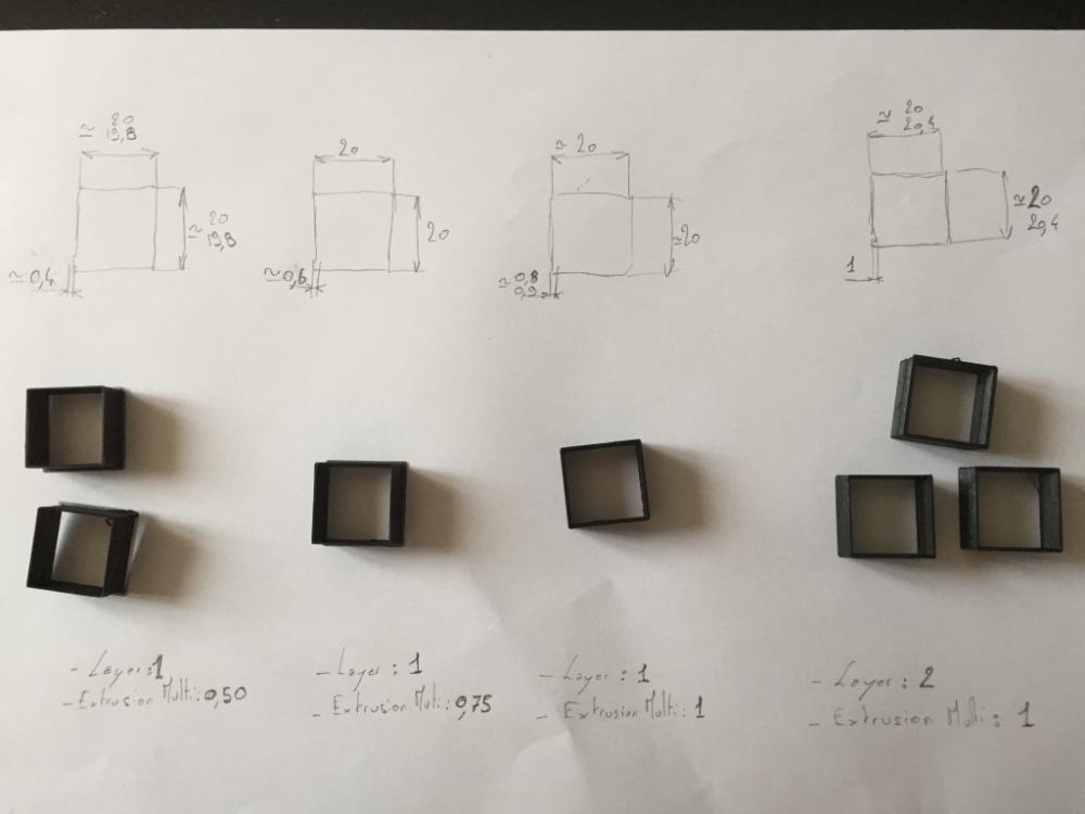 Content de récupérer mon jouet fonctionnel, et soucieux d’améliorer la précision et le rendu de mes pièces, je tombe sur un chouette article de J-Max.fr sur le calibrage …… https://www.lesimprimantes3d.fr/forum/topic/3395-tuto-calibrer-son-extrudeur-aux-petits-oignons/ Ouhhhh pinaise …….. !!!! J Retroussage de manche et gaz !!!! Pour ce qui était des cotes, j’étais pas mal bon au pied a coulisse, à part pour les trous et leurs diamètres intérieurs ….. Mais j’ai suivi le tuto à la lettre et Extrudeur : OK, tous vas bien les dimensions demandées sont celles extrudées. Le Thin Wall …. Alors lui m’a bien fait galérer. Voici mes tests et les réglages qu’il a fallu que je mette pour arriver à réussir le test ... Par contre, le résultat pour le test du Thin Wall est bon, mais il faut que je rechange le Flow ( ou le extrusion multiplicateur ) pour les autres impressions, car mes qualités de surfaces n’étaient pas top, genre des trous, voir la matière qui donner l’impression de ne pas ce toucher entre les déposes …… A 0.8 ou 0.9 c'est mieux, mais bon j'ai le doute: Est-ce que pour vous c’est pareil ??? le test du thin wall est juste un test ou vous gardez vos réglages … bref qu’en est-il pour vous de ce test ????? -