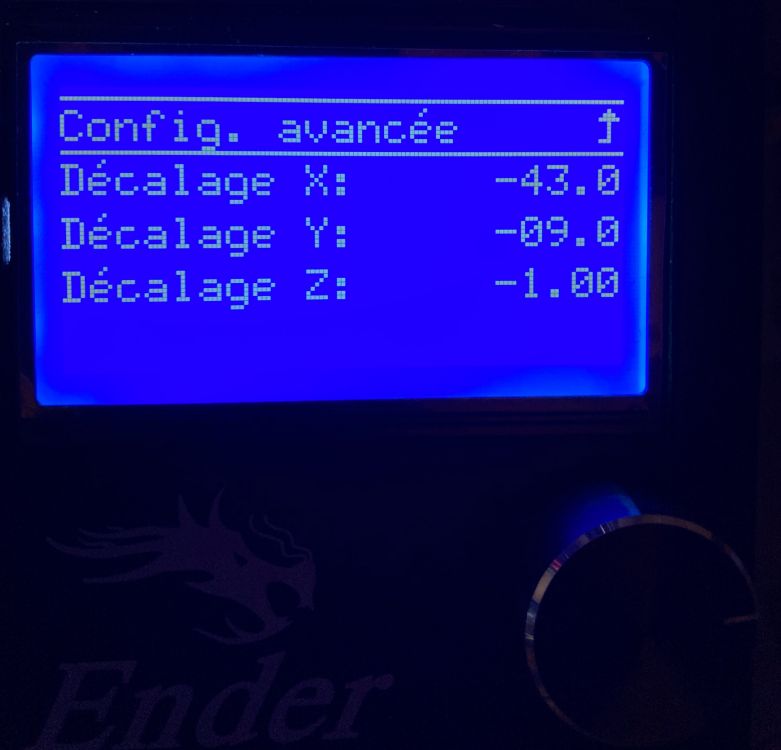 Bonsoir tout le monde. j’ai récemment acquis une Creality Ender 3 pro que j’ai pas mal modifié, ma dernière modif (rien d’original) était d’installer un Bltouch (version cloné Amazon) j’ai fait pas mal de recherches et je me suis lancé et là ça a commencé à kwaker. j’ai suivi le post d’Antoineblt et les conseils fabuleux de Fran6p et je peux vous dire que je me suis cramé pas mal de neurones et soudain j’ai réalisé que ma carte mère n’était pas une 4.2.7 mais une 4.2.2 (pour rappel j’ai une ender 3 pro) je l’ai flaché avec le frimware compilé par creality (4.2.2 Ender-3 pro 32bit Marlin2.0.1 Bltouch V1.1.2without adapter board) et là enfin journée faire bouger les moteurs (avec la mauvaise version le moteur faisait un clac puis plus rien, forcément) et j’ai pu mesurer mon Z offset (-0.6) Quand je lance le « auto home » ça fonctionne interrupteurs fin de course pour X et Y, puis la buse se dirige au centre du plateau et la buse se place Parfaitement à la bonne hauteur grâce au Bltouch (je peux dire que j’étais content), mais c’est là que ça se corse, quand je lance la séquence de 9 palpages j’en ai 6 en moyenne qui se passent mal, la sonde descend puis fait comme si elle avait atteint le plateau et on passe au palpage suivant alors qu’elle se trouve parfois à plus de 2cm au dessus (mon plateau et pourtant bien réglé quand j’imprime sans le Bltouch avec le Z stop c’est nickel) le problème vient il selon vous de ma sonde, de mon soft ou de mon pauvre cerveau? Ce problème parle t’il à quelqu'un? (Je sais que le mieux serait que je compile moi même, ça viendra vite) et deuxième et dernier sujet (pour l’instant ) Y a t’il une différence notable entre la version 4.2.2 et 4.2.7? Conseillez vous l’upgrade? Et pourquoi sont elles visuellement tant similaires ? ( ça m’a fait grandement galérer) J’espère ne pas avoir créé un sujet qui a déjà été moulte fois traité (j’ai cherché sur le forum et aussi énormément sur Google sans trouver mon bonheur) En attendant de vous lire, passez une bonne nuit et un bon week-end
