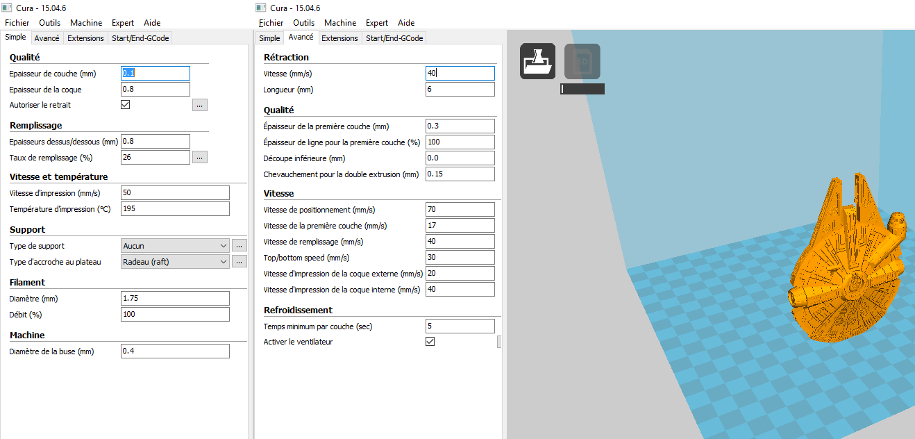 @iPeP Arg je suis démasqué! Oui je suis en général en standard sur Cura by Dagoma. Je vais plutôt utiliser Cura normal, je t'enverrais une photo lorsque j'aurais réussi! Encore un grand merci pour tes réponses.