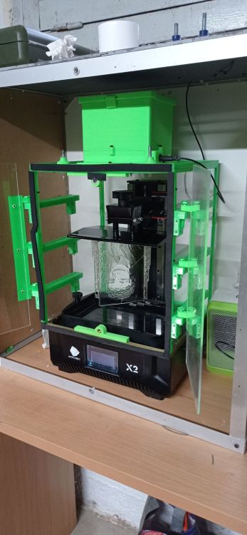 bonsoir à tous deux et merci pour l'aide que dire si ce n'est que je m'étais planté de chez planté, je ne sais pourquoi j'avais branché sur l'alim 12 volt en série, évidemment ça le faisait pas donc j'ai correctement rebranché en parallèle, et là nickel. me demande encore pourquoi j'avais fait un branchement pourri, je suis resté sur le 12 volt 10A, ça fonctionne correctement, bien que le branchement des fils est fait à l'arrache. j'ai fixé quatre PTC sur une plaque en alu de 1.5mm, et mis un ventilo, la température est prise à une vingtaine de centimètres, il faut compter une trentaine de minutes, c'est surtout pour remonter un peu la température dans l'ams, au sous sol, il fait frais ça peut tomber jusqu'à 14, imprimer un filament à 14° c'est loin d'être le top, avec la cr6 se, j'avais beaucoup de difficulté à imprimer sans défaut, d'autant plus que le filament devenait cassant, je vais maintenir la température vers les 30°, dans le capot d'origine pas assez de place, et je ne voulais pas le percer, j'ai du refaire un capot, avec des restants de récup de plexi de 4 mm, c'est le premier jet, mais il me semble pas mal, pas encore étanchéifié et j'ai pas mis toutes les vis. si je le refais, je le referais en deux parties, voilà ce que ça donne, petg et abs (pour équilibrer l'utilisation du filament) sur ce je vous laisse merci encore pour l'aide apportée, toujours pas compris pourquoi le branchement pourri. pat