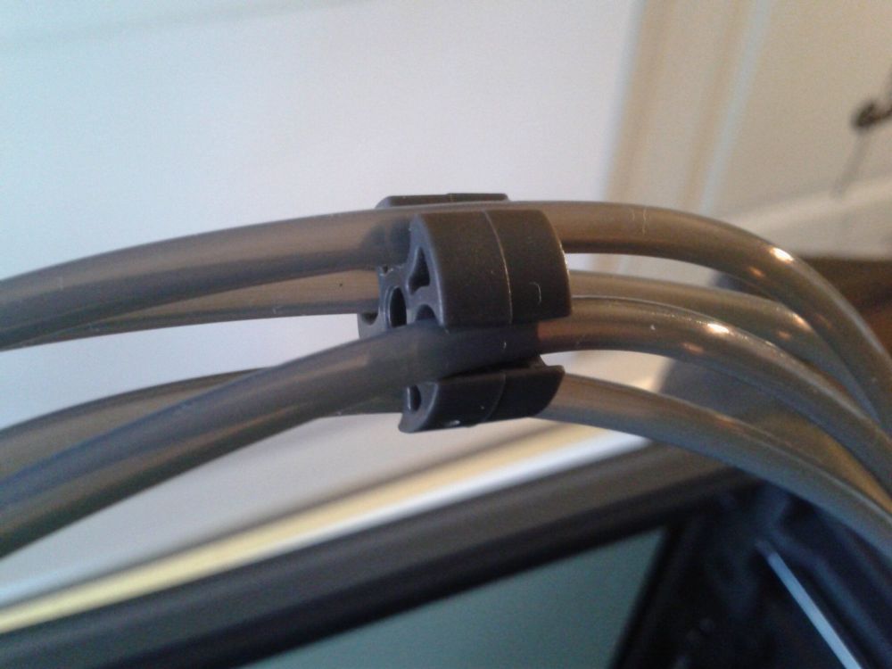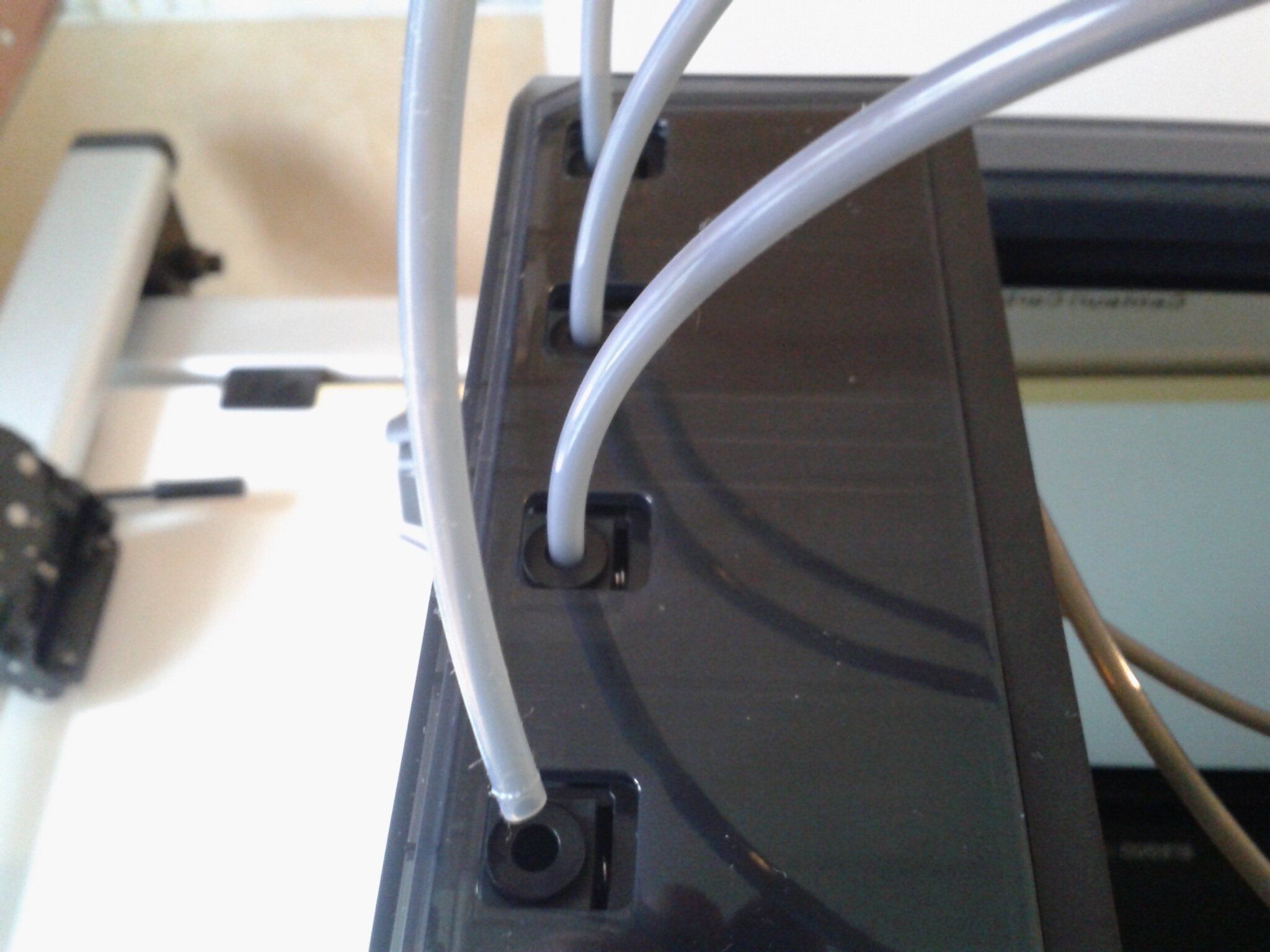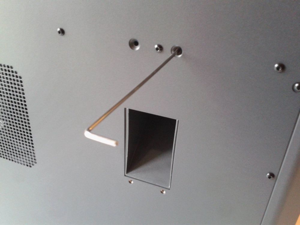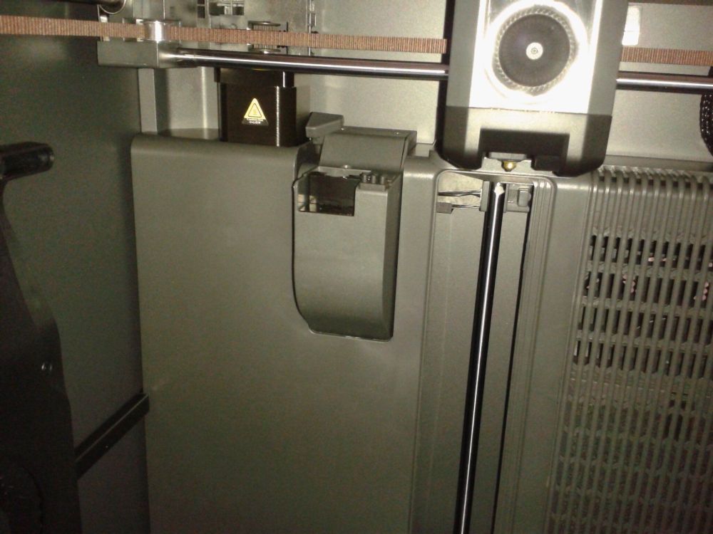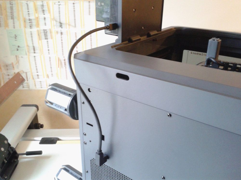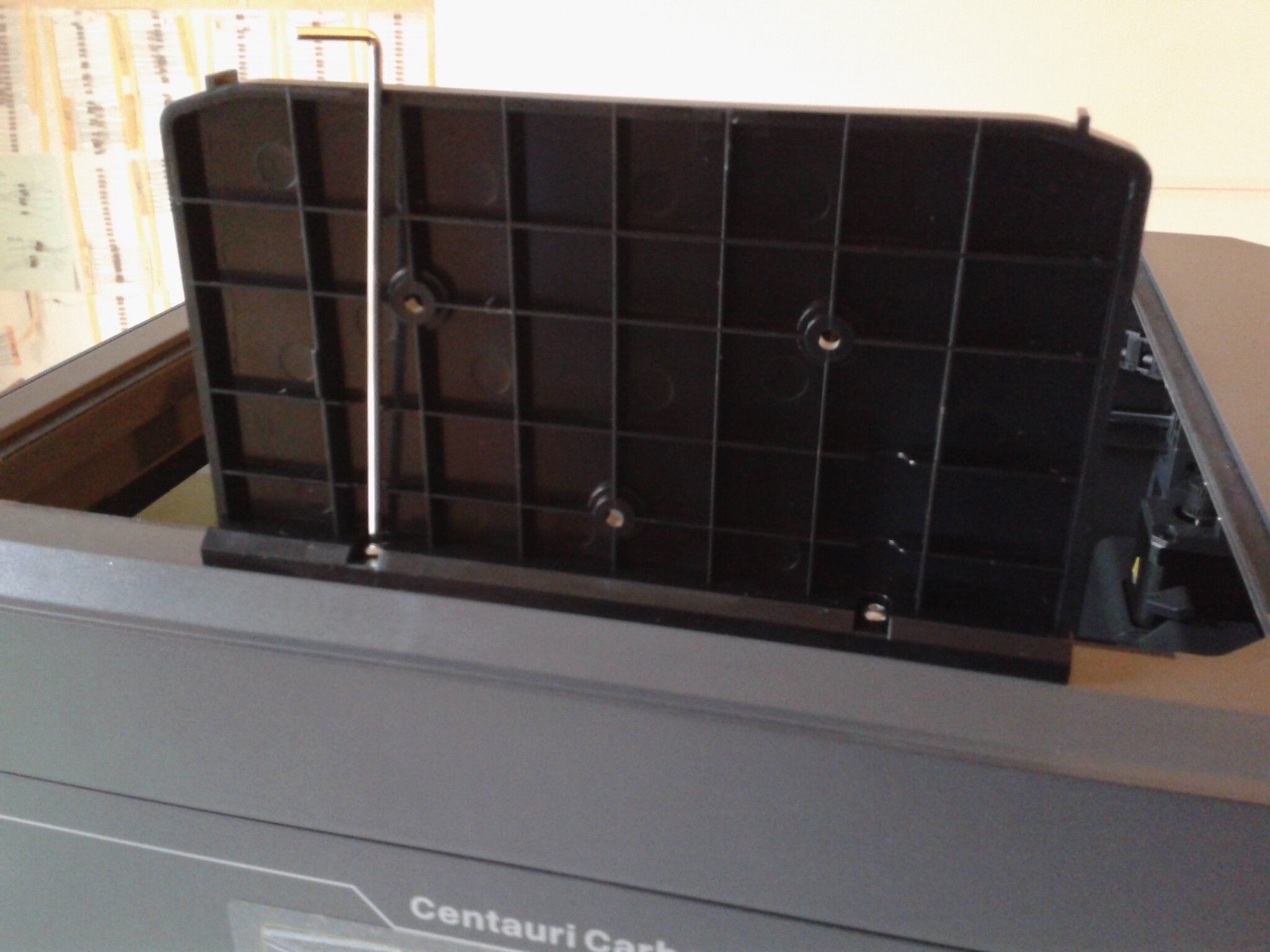 Assemblage C'est relativement simple et prend une dizaine de minutes, tout est détaillé dans la documentation papier fournie. Si pas déjà fait lors du déballage, il faut retirer les trois vis qui sécurisent le plateau lors du transport. Puis Connecter et mettre en place l'écran. Placer et fixer avec quatre vis l'ensemble essuie-buse ("nozzle wiper assembly"). ( On peut ici vérifier que si on déplace manuellement la tête d'impression face puis vers le système essuie-buse que le nez de la buse se trouve bien un poil au-dessus de la partie en métal et que cette partie en métal se déplace d'arrière en avant quand on en rapproche la tête. Tête en face de la partie en métal de la chute du système essuie-buse. Tête poussée contre le système essuie-buse, la partie en métal s'avance avec la poussée de la tête contre le système essuie-buse. ) Installer le support pour le système CANVAS au châssis avec deux vis, Fixer le système CANVAS a son support avec trois vis, insérer le hub-filament (4 entrées, 1 sortie) à l'entrée de la tête d'impression et le fixer avec deux vis, Fixer les quatre supports des porte-bobines mettre en place les portes-bobines (attention bien respecter la numérotation car deux porte-bobines ont un ressort qui tourne à gauche et les deux autres tournent à droite et donc si vous inversez le 1 ou 2 avec le 3 ou 4 cela ne maintiendra plus les filaments légèrement tendus sur les bobines et il y aura risque de nœuds du filament sur ces bobines lors des changements de filaments) Connecter le câble 4 broches du système CANVAS Connecter entre le système CANVAS et le hub filament les 4 tubes PTFE de guidage du filament Remarquer que quand l'on pousse les tubes PTFE dans le hub, une partie du hub est sur ressort. Si vous avez un jour besoin de déconnecter un tube PTFE du hub-filament, il vous faudra un l'outil "PTFE Tube Tool" (fichier d'impression de cet outil dans la mémoire de l'imprimante et fourni sur la clé USB) pour faire cet appui qui pousse cette partie du hub sur ressort pour déverrouiller le système qui bloque les bouts de tube PTFE dans le hub. Assembler les deux parties du couvercle de l'enceinte thermique en calant et glissant la petite partie, et placer l'ensemble sur la machine. Retirer la petite étiquette papier de la plaque flexible et replacer la plaque. Vérifier le filtre derrière la grille