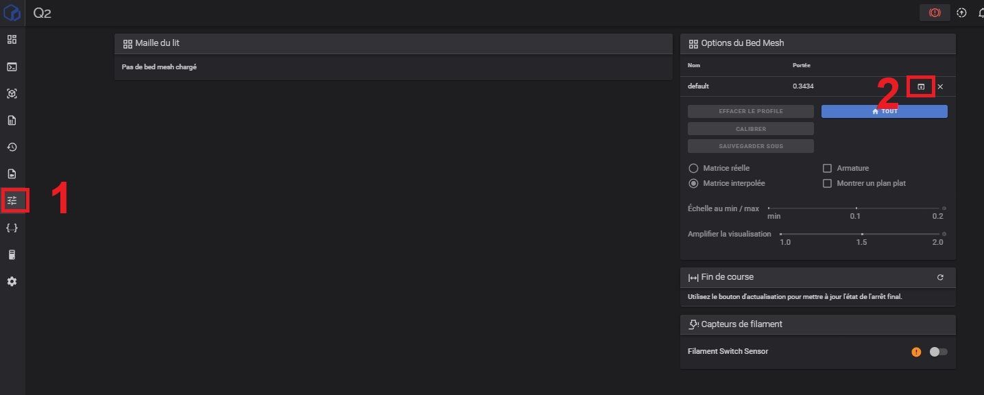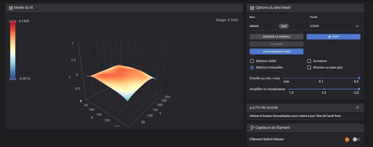 15. 1) Dans Fluidd, accéder à la section «Réglages». 2) Si le maillage n'est pas affiché, le charger (à condition évidemment qu'il en existe un enregistré ) 3) Maillage affiché, tu peux en faire une copie-écran :