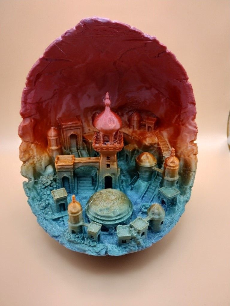 Effectivement. C'est pourquoi je préfère les filaments qui changement graduellement de couleur au fur et à mesure de l'impression (comme ton PETG gradient), plutôt que les bi / tri /quadri couleurs dont les résultats sont plus aléatoires. Par exemple, la «Moon city» rend plutôt bien :