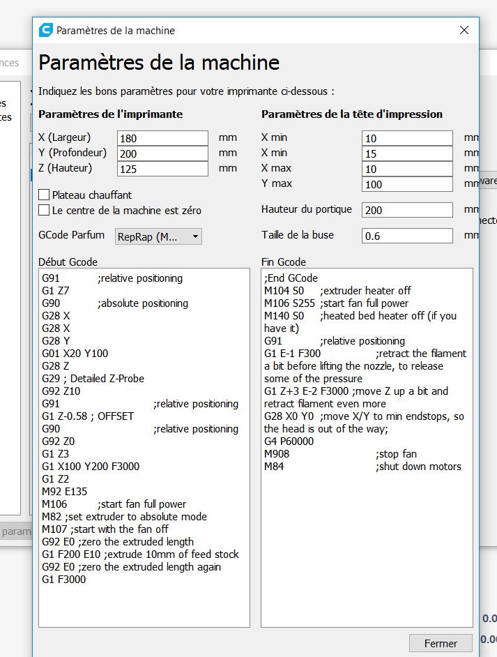 Bonjour, Désolé @erick, je n'ai plus CbD d'installé sur mon nouveau PC, j'utilise CURA 2.3.1 De mémoire il faut aller voir dans le fichier XML ... A valider par ceux qui l'utilise Pat