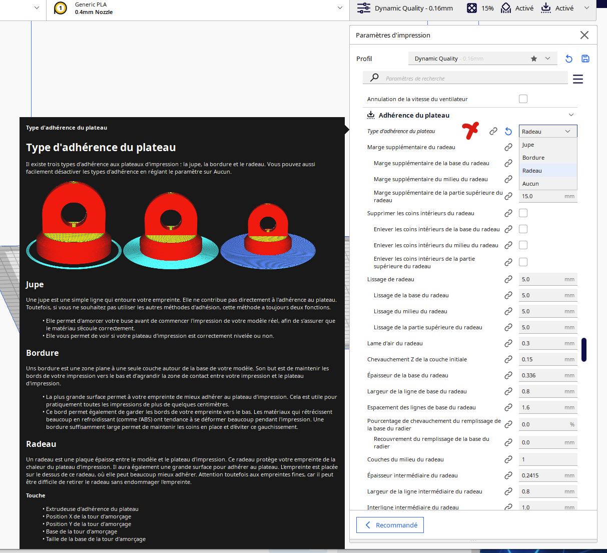 10. L'option radeau n'est pas dans support, mais dans "adhérence du plateau" Du moins pour la version Windows, là c'est la version 5.11.