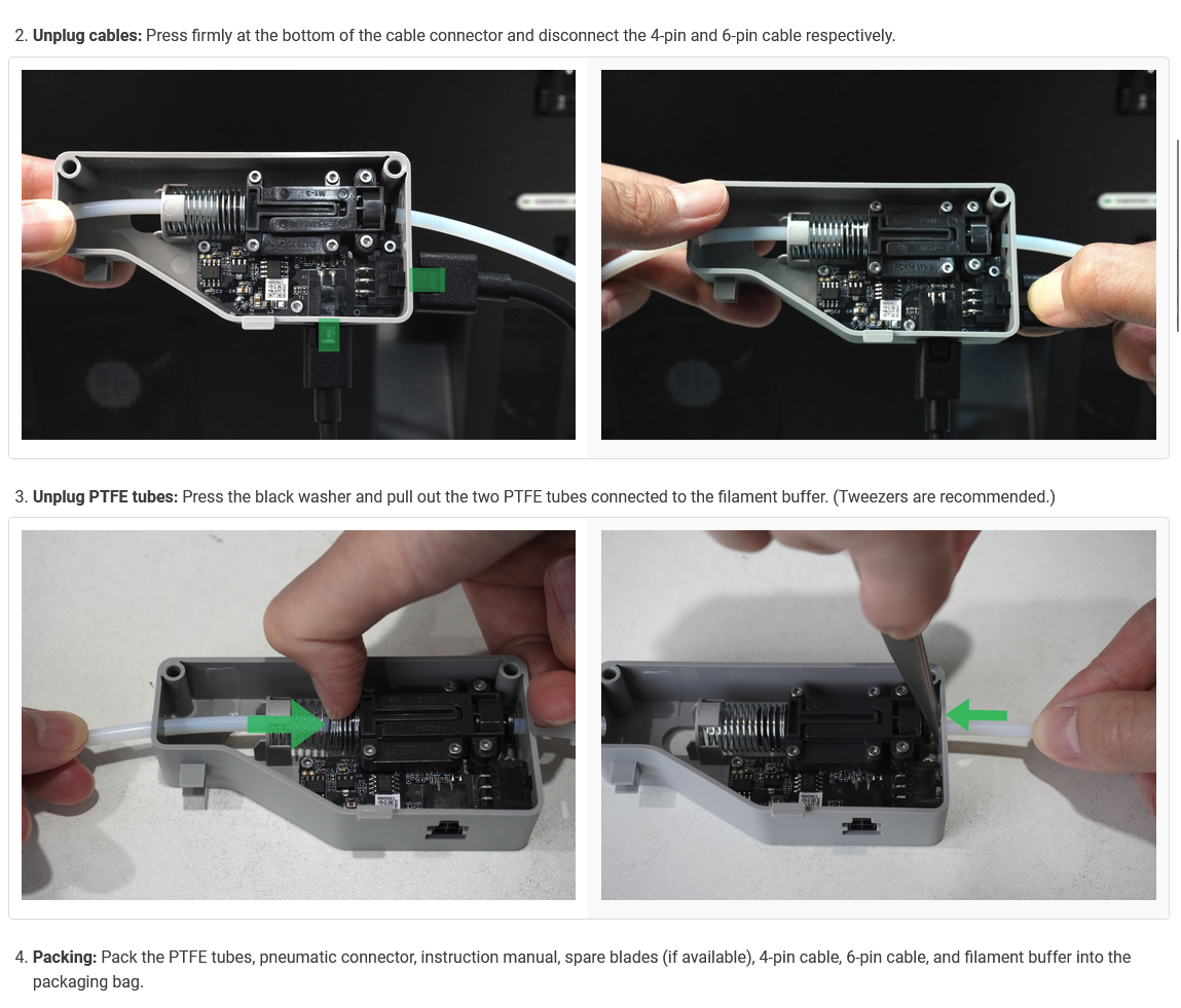 @karakouki Je n'ai pas ton imprimante mais une K2 Plus CFS, mais le principe est le même pas de difficulté majeure. Quel câble ? Regarde sur le Wiki de Bambu, il y a les indications. le lien ci-dessous comment démonter l'AMS pour le renvoyer https://wiki.bambulab.com/en/ams/manual/packing-guide https://wiki.bambulab.com/en/p1/manual/connect-ams