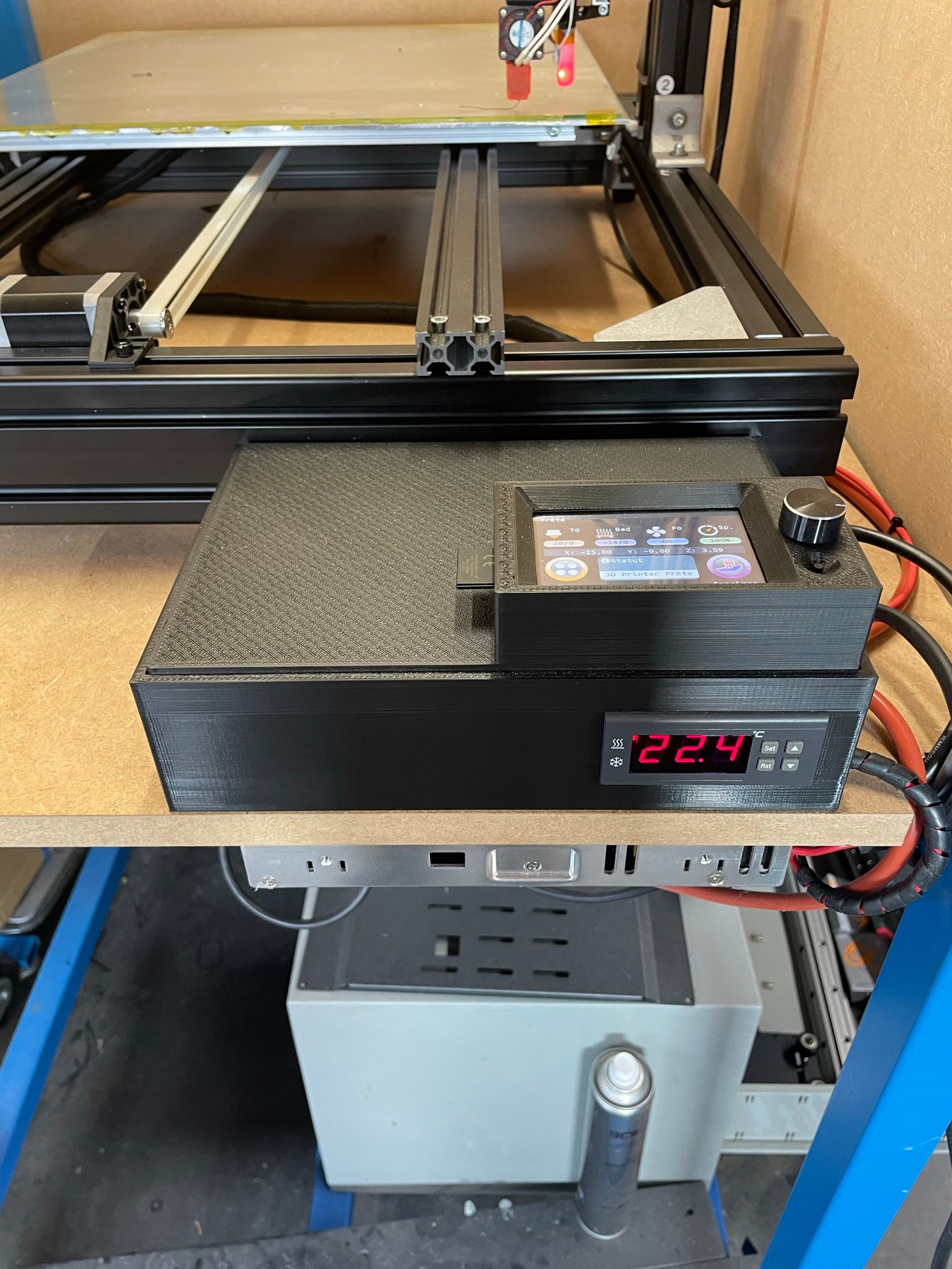 Imprimante 3D 500 x 500 x 500 Carte Bigtreetech skr v1.4 turbo Ecran Bigtreetech Guidage HIWIN Bed en 220V Bed verre 2 build tack neuf 3 têtes E3D Hot end 2 V6 + 2 Volcano Buse en V6 et Volcano trempées pour fil carbone Beaucoup de pièces neuves en plus: resistances, sonde t°, courroies, galets, entraineur de fil ... Imprimante en Belgique 500€ négociable. Merci. .