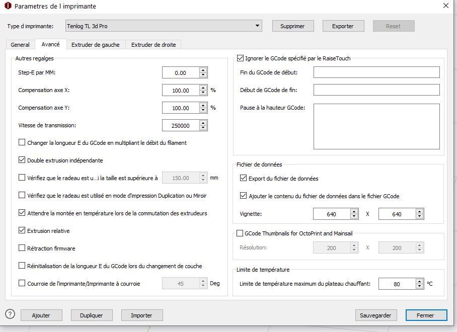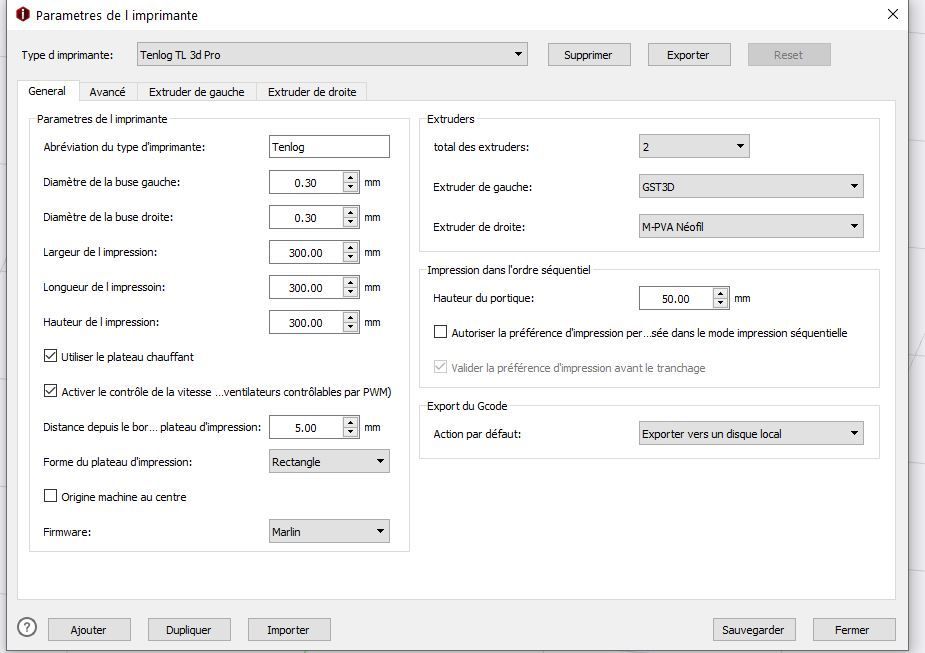 Voici le G-code de la pièce en question ainsi que mes paramètre machine.