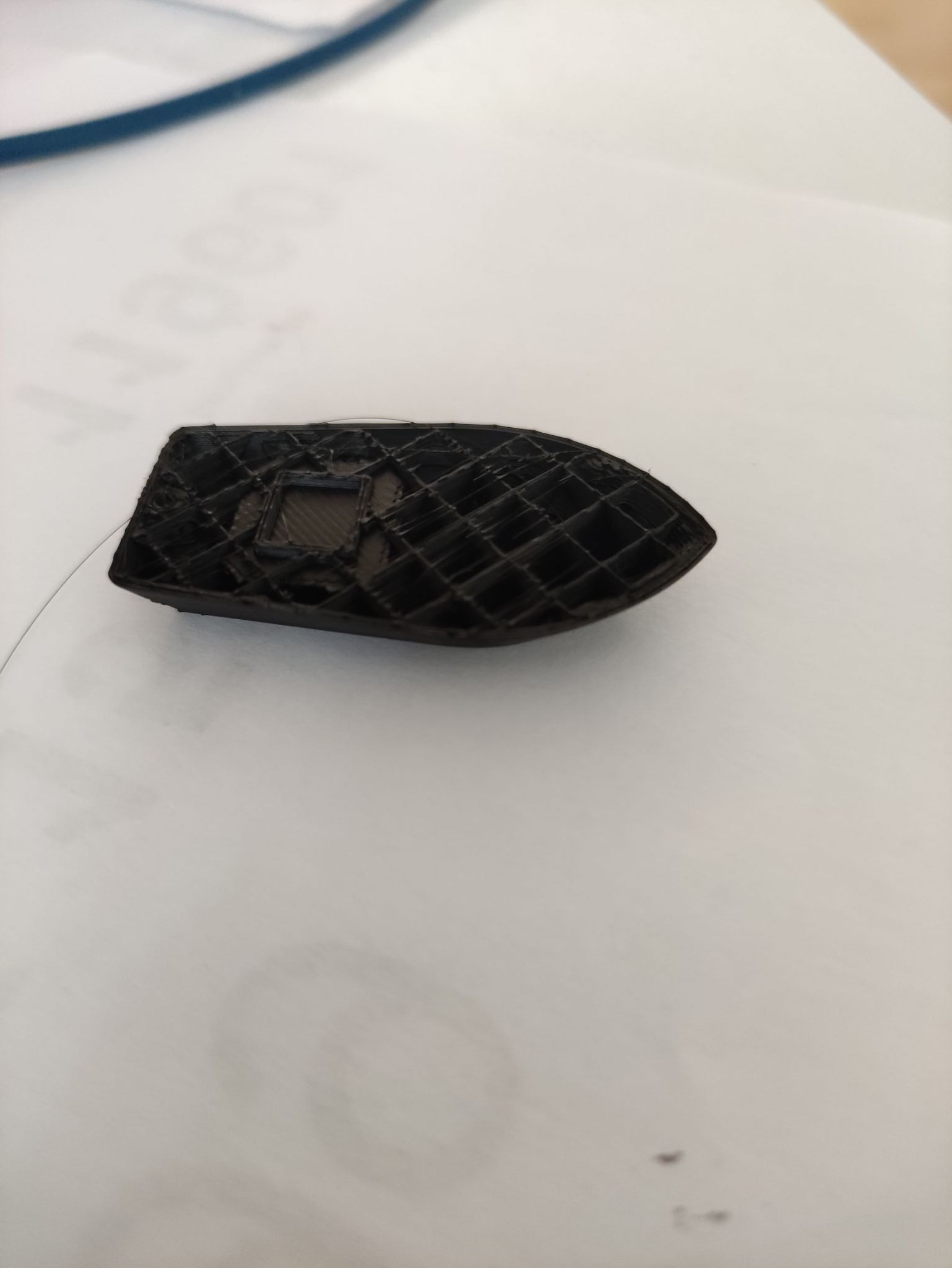 Aucun changement... nouvel essai en 2mm à 25mm/s J'ajoute un tour de vis pour le serrages des roues de l'extrudeur ( c'était plus serre que ça avant...) Et re-re belote... Exactement le même résultat en plus poilu... Je sèche... -
