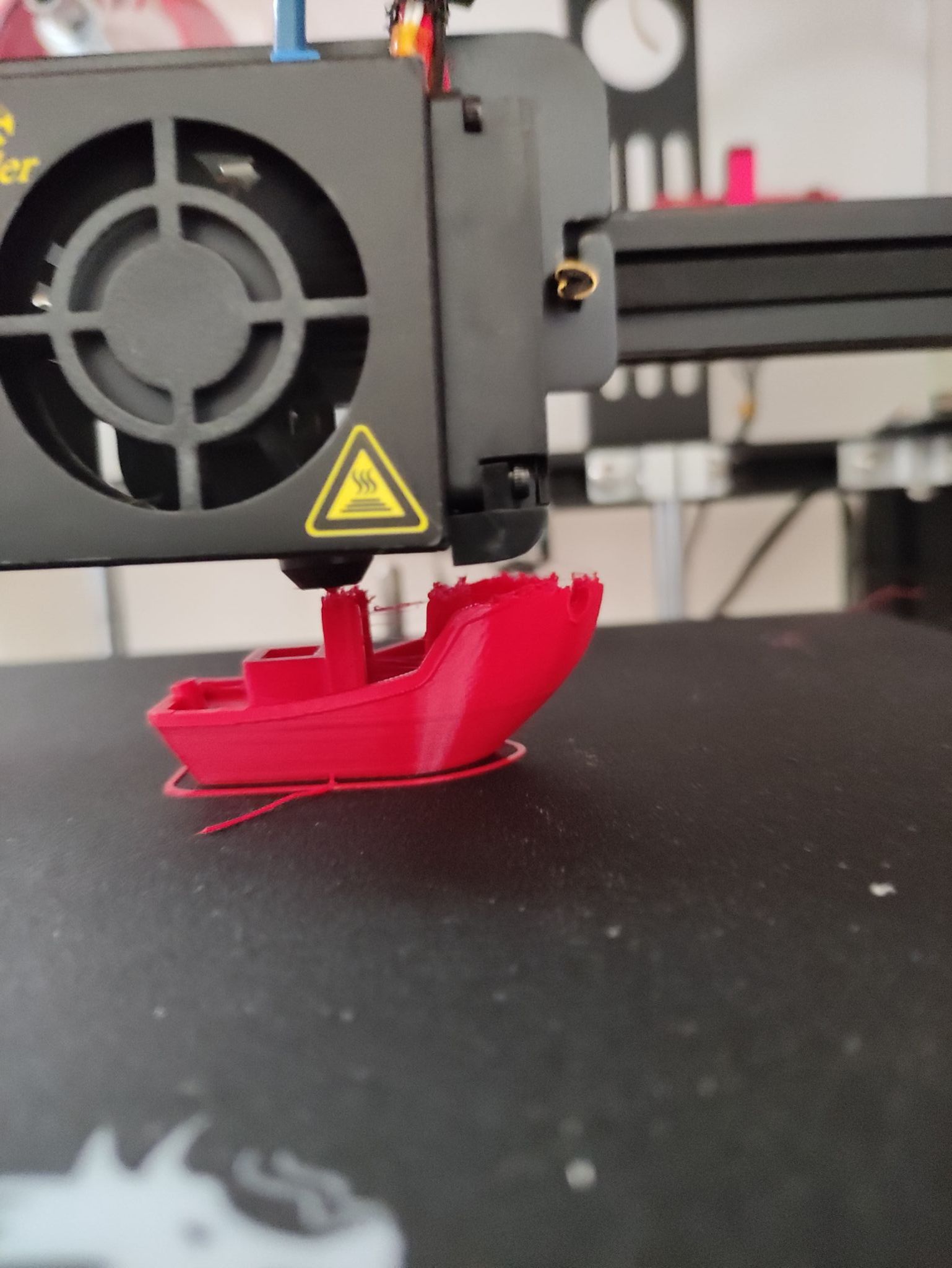 Merci #Idealnight je me sens seul ici La boîte n'est pas "bien fermée" c'est pas étanche du tout... c'est ce genre de truc: Téléchargement Ender 5 enclosure for IKEA Lack par Martin Steinorth (myminifactory.com) En pas aussi classe... Sortir complètement l'imprimante est très galère maintenant. Du coup j'ai "juste" retiré un coté et ouvert les portes. Bah nada... La même chose, j'ai la coque du benchy et dès le début de la rétraction (fin de la coque et début de la cabine) ca claque. J'ai refais une titi procédure et relancé ce benchy (toujours boîte ouverte). Un peu mieux mais toujours pas fini, j'ai gagné 1mm de hauteur, peut être deux... Malgré mes différents essais je reste quand même sur l'idée d'un bouchon, c'est tellement dur de retirer le filament, je dois forcer comme un boeuf. -