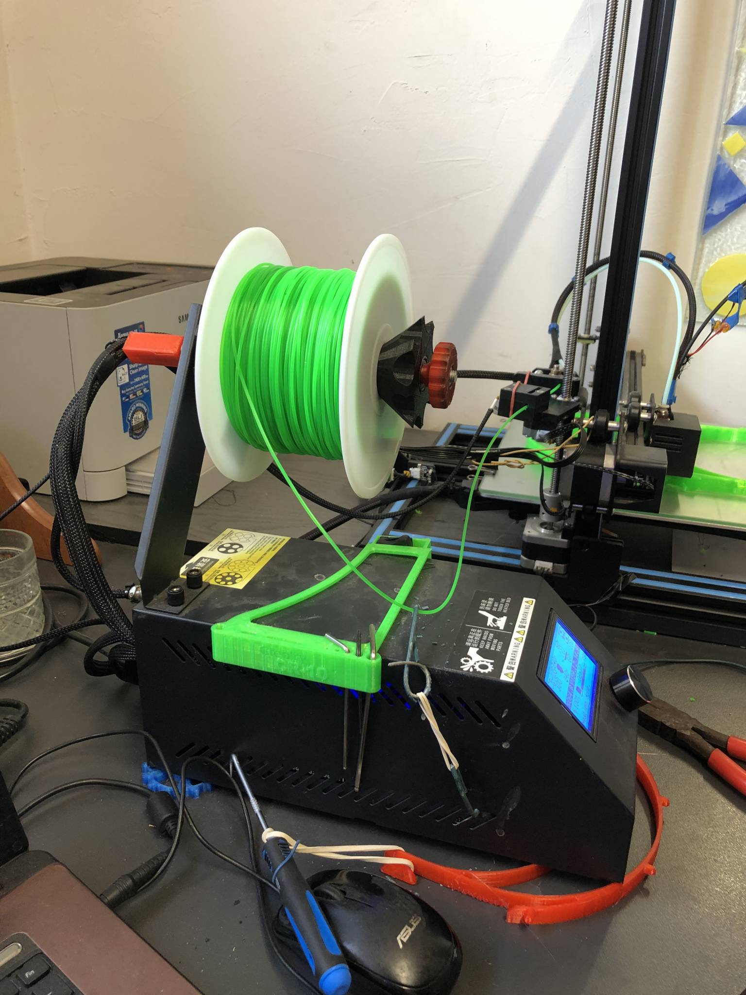 11. Bonjour, je suis aussi confronté au problème avec ma bobine de filament , j'ai d'abord pesté contre le fabriquant mais en lissant divers retours sur ce forum , en fait c'est de ma faute je laissais le fil sans tension lorsque je rangeais les bobines, comme je dois faire des impressions de plus de 3 heures et pas envie de rester à surveiller, j'ai fait un bricolage rapide qui fonctionne voir la photo, comme le fils est tiré de travers et non de face et l'élastique lui applique une petite tension supplémentaire en attendant ça m'évite de rembobiner.