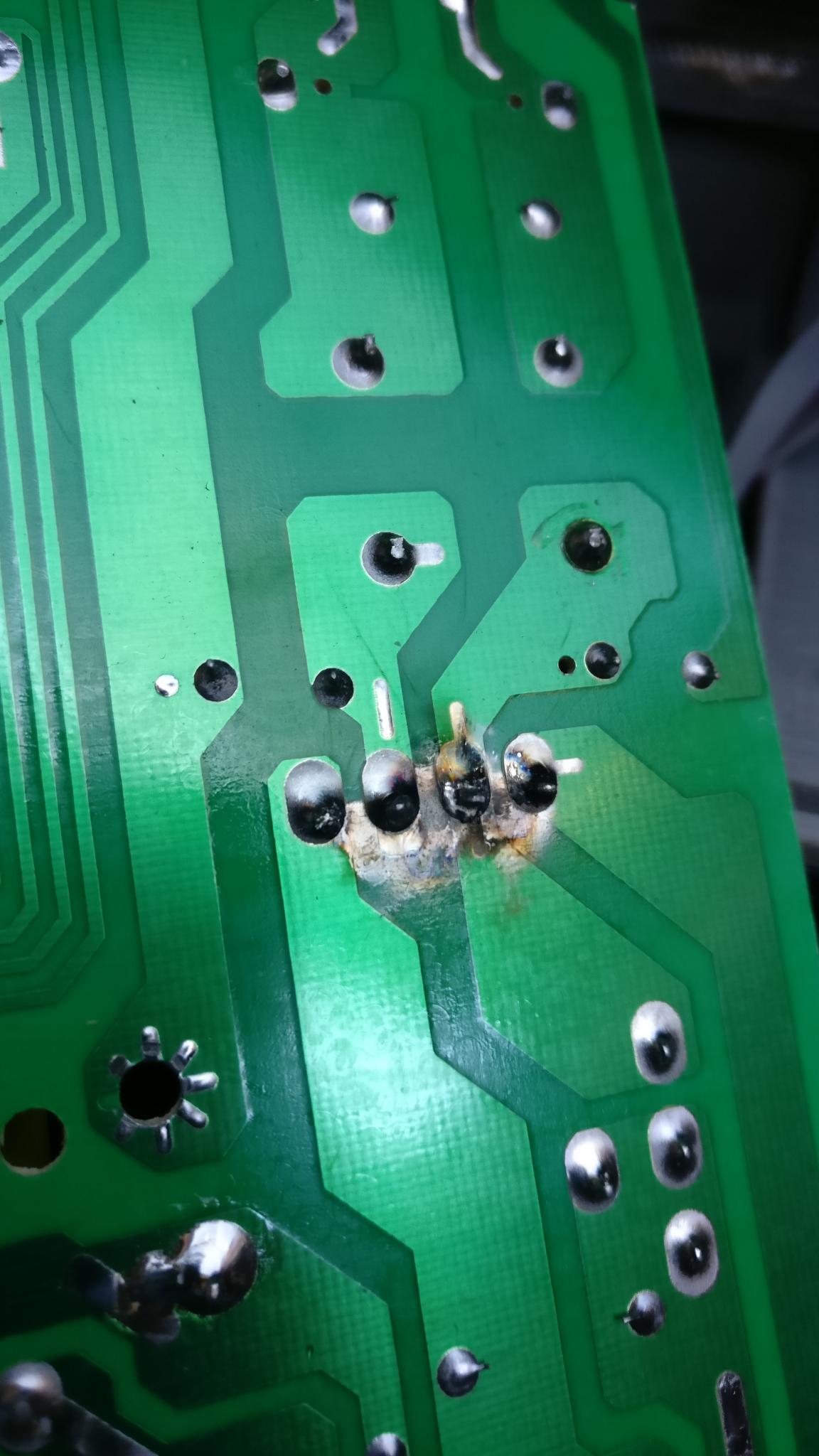 Bonjour, et à l'aide !!! Ayant fait mes réglages de Vref selon le tuto de @stef_ladefense, je referme tout et me prépare à faire un impression de test. J'allume l'imprimante, et là, PAF !, un gand éclair dans mon boitier et tout se coupe, même le disjoncteur de la maison (16A). Je réouvre tout pour voir où ça a cramé et… je ne vois rien ! Comme l'étincelle a eu lieu dans le boitier de l'alimentation, je démonte la carte et je regarde en dessous et là, oh surprise, voir photo ci-jointes. Un électronicien pourrait-il me dire ce qu'il s'est passé ou du moins si c'est de ma faute ou celle du composant qui a décidé de se suicider à ce moment là ? Il s'agit du composant HS1 ou BD1, enfin, le gros entre les deux condensateurs bleu. J'ai une alimentation de rechange mais c'est une 20 A alors que celle de ma Creality CR-10 est une 30 A. Je me dit donc qu'il faut que j'en recommande une. a vous lire asap
