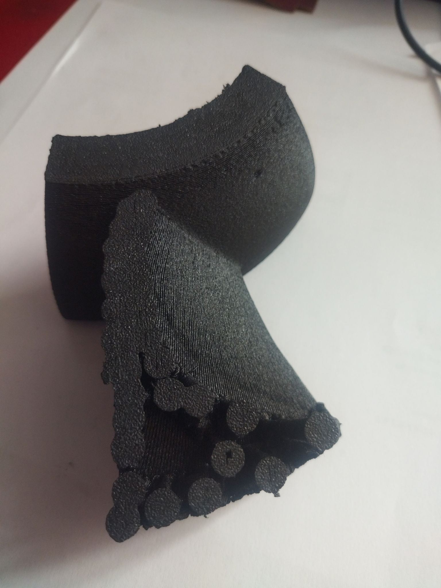 Re c'est quasiment l'état de surface que j'ai avec les supports en PA12 et un espacement pièces interface at 50% de l'épaisseur de la couche, J'ai été surpris du décollement facile des supports. J'ai lancé en début de soirée la même turbine mais ABS-CF, le client final souhaite une version moins chère, même si il perd de la résistance au choc,( lors des sortie dans les bacs à gravier des circuits ils perdent des pales ) le client est roi j'en vendrais plus. le résultat demain vers 21H bon surf -