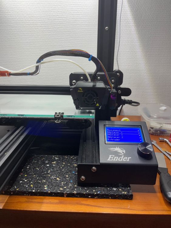 @pommeverte j’ai trouver la solution il suffisent juste de clic sur le bouton de écran.. J’ai lancer un nivellement du lit mais j’ai impression que la buse et encore haute au vu de impression comme on peut voir ou trop basse je ne sais pas car cela ne me l’a jamais fait.. là pièces entières qu’on vois je l’es imprimer hier soir et on peut voir que le sol et pas du tout bien