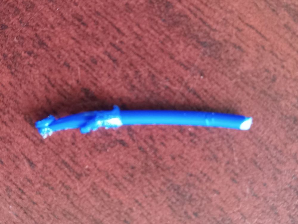 Tout est en métal, l'extrudeuse et le mécanisme d'entrainement, le ptfe est exactement (Capricorn bleu). J'ai enlever le tube de la buse et poussé le filament a la main et sa sort bien, j'ai remarquer que le filament n'est pas rond. Première photo, c'est quand je pousse et retire rapidement. Deuxième photo, le filament est un peu aplatie sur un coté a cause de l'engrenage. Troisième photo, système d'engrenage, j'ai remarqué que le filament fait une légère courbe, ma vis est serré. Pour la tour de température il y en a trois, pla, pla190 et pla+, je prend le pla. Merci encore pour votre aide.