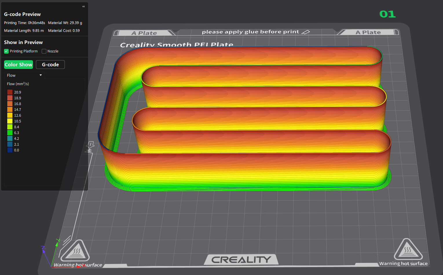 En corrigeant à la main le leveling (qui de base est fait automatiquement), j'arrive à avoir à peu près la buse au même niveau partout. Mais c'est très loin d'être parfait.