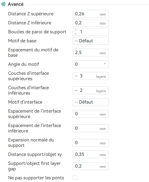 Salut ! C'est un sujet pas simple les supports. La plupart du temps, j'essaie de me débrouiller pour... ne pas avoir de supports (en jouant avec les orientations d'impression, en découpant les pièces). Le mieux est l'ennemi du bien : une surface tenue par un support ne pourra pas être aussi lisse et belle qu'une autre surface. Mon idéal c'est donc de penser la pièce pour que les surfaces fonctionnelles ne soient pas tenues par des supports. Ou que les surfaces "moches" soient cachées une fois assemblées. Cela étant dit, ça n'est pas toujours possible. (je laisse de côté les solutions multimatériaux, qui sont une belle alternatives mais demandent un outil multifilament que n'a pas encore (mais bientot !) la Elegoo CC) Les supports organiques sont à mon avis la solution la plus efficace : leur forme permet d'éviter d'avoir les lignes de support et les lignes de la pièces dans le même axe. Et c'est souvent bien plus économe en filament. Concernant la qualité de la pièce, c'est une subtile alchimie à trouver : Jusqu'à quel angle de surplomb est ce que tu peux imprimer sans support : voir les pièces de type "Overhang test". On s'aperçoit la plupart du temps qu'on peut aller bien plus loin qu'on ne le pense dans l'impression sans supports. Une fois que tu as déterminé cet angle, ça se règle dans le slicer. Quelle distance efficace entre le support et la pièce : un support trop proche de la pièce et les lignes vont fusionner => tu risques d'arracher ta pièce en supprimant le support, ou à minima d'en abîmer la surface un support trop éloigné, et le surplomb va s'affaisser, et le rendu est moche. Jusque là, j'en suis arrivé à un réglage de plus ou moins 1,3 fois la hauteur de couche pour la distance entre la pièce et le support (Distance Z supérieure, dans le slicer) Mais attention, tout ceci peut varier en fonction du filament utilisé. -