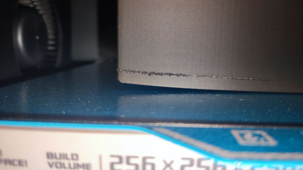 Salut J'ai fais un certain nombre d'impression depuis vos messages. D'abord j'ai fait un profil d'impression ou je double le nombre de couches sans ventilation, je passe de 3 à 6 couches, et ou le ventilateur auxiliaire reste à 5%. Ca à légèrement améliorer les choses mais j'ai encore du warping et dans certains cas les pièces qui se décollent. Ensuite j'ai reçu mon ams 2 pro, du coup je suis passé par l'étape séchage du filament. La pour le coup coup la seule amélioration c'est sur le petg, ma bobine est plus vieille que mon pla, l'impression est de meilleure qualité mais ça na rien changé pour le warping ou le décollage. Enfin madame étant en vacance j'ai pu faire mes impressions porte ouverte, je n'ai remarqué aucune différence. Je vous glisse deux photos. La première j'imprimais des boite pour gel de silice pour l'ams 2, le petg à formé un chewing gum sur la buse et finalement il s'est collé sur la pièce ça à stoppé net l'impression… La seconde je pense que j'ai pas besoin de détaillé que les pièces n'ont pas adhéré. Je pensais acheté une deuxième plaque pour pouvoir enchainé les impressions et attendre que la première plaque est refroidit avant de détacher mon impression. Je vais tacher de rapidement passé commande pour voir si c'est pas juste ma plaque qui serait morte. Si vous avez d'autres idées n'hésitez pas Merci pour toutes vos réponses en tout cas.