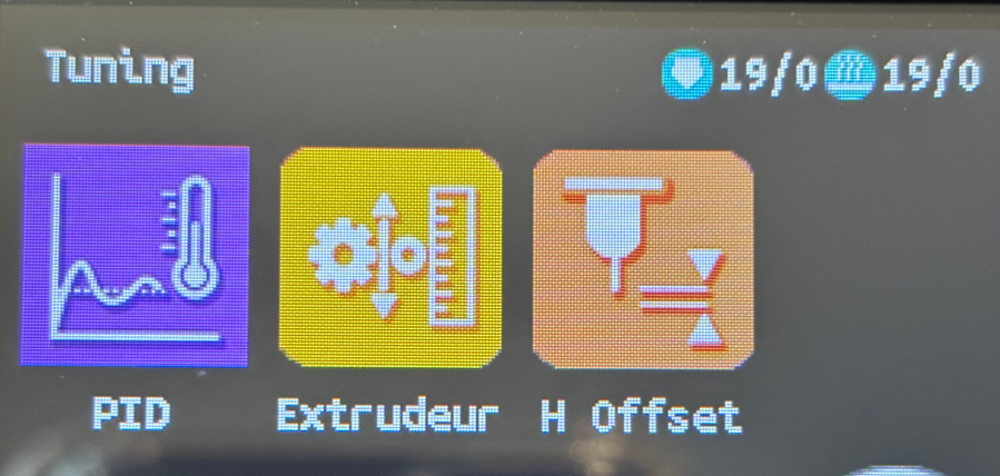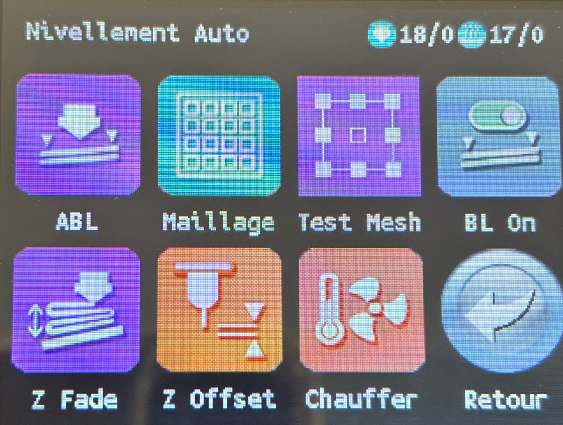 12. Oui vu, mais étrangement il ne fait pas le tour des 4 coins comme sur le firmware d'avant, il se calibre au centre et passe au premier point avant gauche et c'est tout. Impossible de passer aux autres points. Pas grave je l'avais fait au micro poil avant. Bon sinon z offset semble propre, il faudrait que je règle le retrait du filament, mais c'est un autre histoire et surtout, ce n'est pas ma machine donc le fiston le fera avec son filament humide de Bretagne Voilà, je vais continuer à tester tous les menus, mais je crois que le but prévu est atteint. Le reste, c'est du rab ! Un énorme merci pour l'aide !