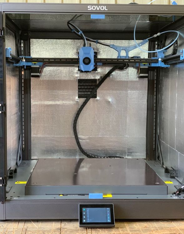 Bonjour à tous, voila, je commence à recevoir les éléments au fur et à mesure. Je n’ai pas encore reçu l’imprimante mais elle va peut être arriver plus tôt que prévu, la semaine prochaine. En prévision du montage, je voulais savoir si il peut être intéressant d’isoler les parois ainsi que le dessous du lit chauffant? J’ai vu que ça se faisait afin de réduire la consommation électrique et les temps de chauffage. Je trouve ça intéressant car je vais mettre cette imprimante dans mon atelier qui n’est ni chauffé, ni isolé. Il y fait la même température qu’à l’extérieur donc l’hiver ça risque d’être compliqué de maintenir une température convenable dans la chambre… mais je ne voudrais pas non plus faire surchauffer le lit par exemple.. J’ai aussi continué mes recherches et en regardant la série de vidéo ci dessous, j’ai eu la confirmation que les têtes et les hotend des SV08 max et zéro sont bien identiques. Il parle simplement d’un petit upgrade qui peut être intéressant en modifiant la coque pour ajouter un ventilateur supplémentaire afin d’augmenter son refroidissement et ventiler la carte. https://www.printables.com/model/1391303-sovol-sv08-max-toolboard-cooling-fan-stock-cover-m La machine est donc susceptible d’atteindre des températures plus élevées qu’annoncées mais il faudra malgré tout faire des tests pour être sûr que rien n’est endommagé…