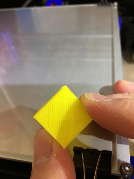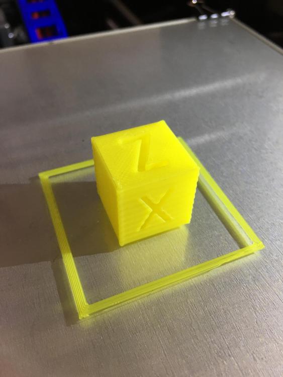 Voila, j'ai fini mon upgrade, je vous mets quelques photos. Le support hotend est prévu pour une E3D mais la gorge au niveau de la fixation de la hotend n'est pas la même entre la AIO et E3D. (plus large sur AIO) J'ai contourné le problème en retournant l'étrier de fixation. STL du support: https://www.thingiverse.com/thing:2942200 Une fois le réglage du PID et inversion sens moteur extrudeur faits j’ai lancé un impression sans toucher mes paramètres cura. C'est plutot propre pour un premier essai, je change les coupleurs cette nuit et ferai un test de rétraction. Je constate que les coins du cube on l'air épais, serai-ce de la sur-extrusion?