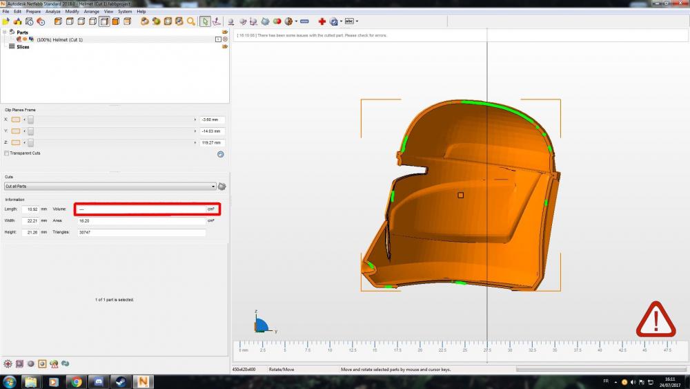 Les objets étant trop gros pour les imprimer d'un coup j'ai télécharger netfabb pour pouvoir les découper, c'est la que mon problème ce pose, j'ai remarquer que mon objet n'avais pas de volume et j'aimerais savoir comment y remédier car je suppose que si mon objet n'a pas de volume l'imprimante ne peux rien imprimer ?