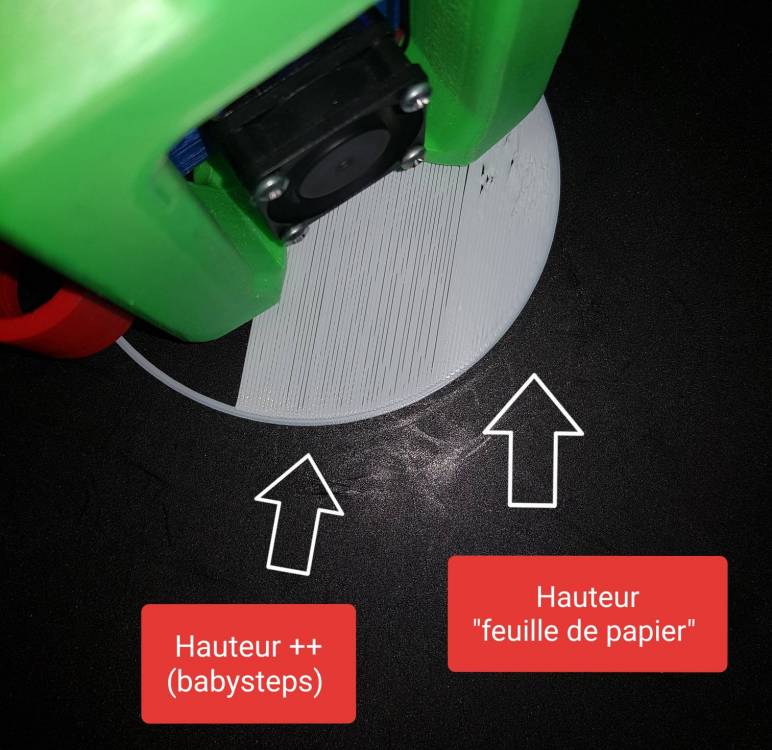 Merci de ta réponse rapide, Suite à ton message j'ai refait un nivelage complet de mon lit chauffant, hauteur d'une feuille de papier partout. Il est vrai que je n'ai jamais été 100 % satisfait de mes capteurs d'auto-levelling jusqu'à maintenant, mais après réglage et impression sans filament pour tester la hauteur réelle en direct, le plateau est bien nivelé sur toute la surface d'impression nécessaire (c'est pas l’Amérique non plus mais on est quand même loin d'un verre bombé chinois). Récemment (peu avant le début des problèmes de couche) j'ai eu une impression qui s'est décollée et j'ai dû nettoyer la buse qui était recouverte de plastique, donc j'ai sûrement maltraité mes câbles de la thermistance et de la cartouche chauffante. J'ai aussi maintenant (depuis cet après-midi) des "Thermal run away" (donc mise en sécurité) qui arrivent parce qu'il semblerait que l'imprimante n'arrive pas à garder sa température d'impression (elle monte à 230 °C mais ensuite perd lentement des degrés). Est-ce que c'est le signe d'une thermistance en train de rendre l'âme ? Est-ce que mon problème n'est pas ce qui arrive quand on a une température d'impression trop basse ? (ce qui signifierais peut-être que la thermistance est hs et renvoie une valeur faussée). L'image en PJ c'est une impression avec le lit réglé, avant un "thermal run away" au quart de la seconde couche. Au quart de la première j'ai changé le réglage des babysteps pour relever la buse parce qu'elle était trop près et créait le même problème qu'avant. J'ai fait une mesure de la résistance de la cartouche chauffante (E3Dv6 officielle) : 25.6 ohms. Un peu haut (dans la doc 19.2 ohms en 24V 30W) mais ça me paraît pas choquant. Comment on teste une thermistance ? La doc officielle ne précise rien pour elle... -