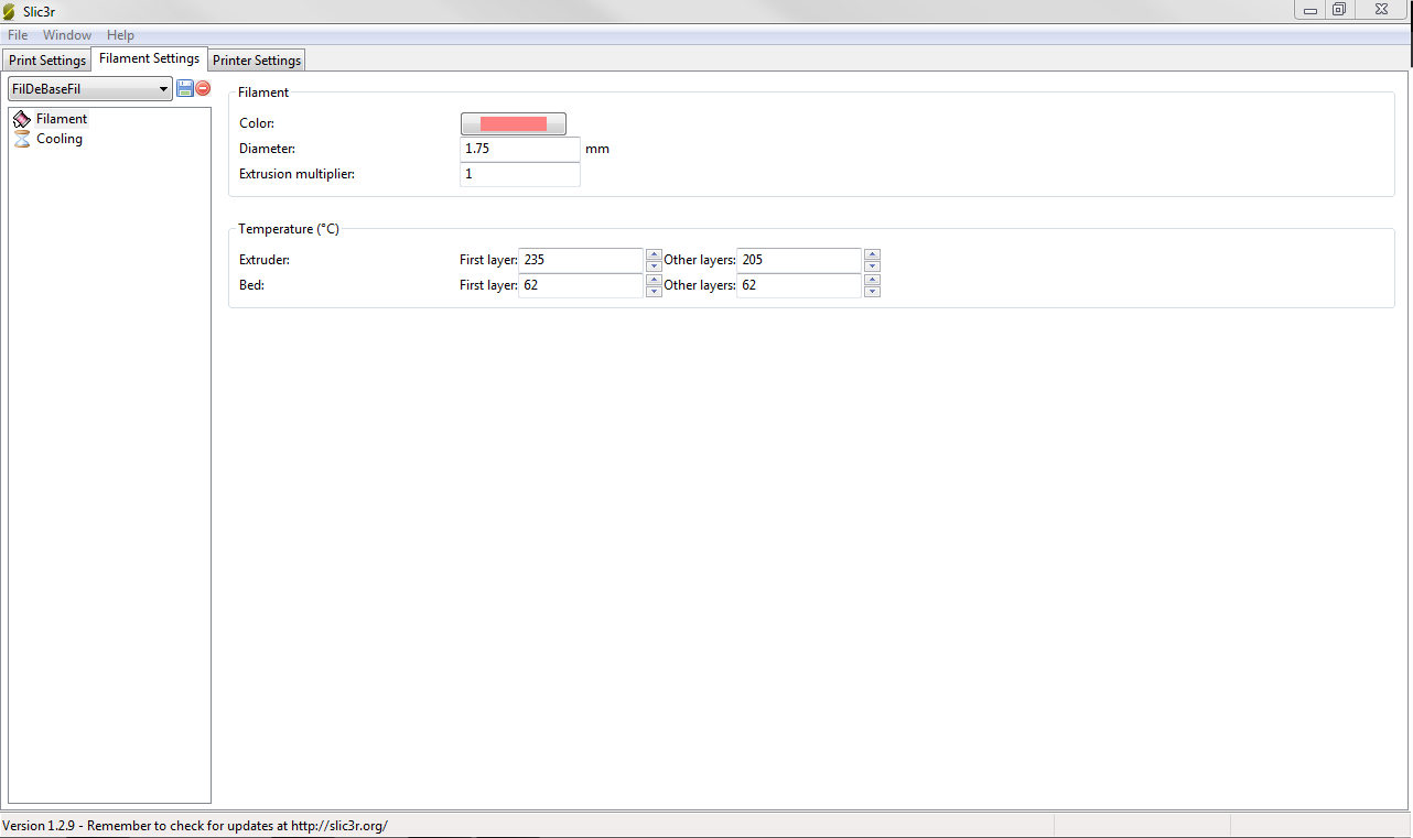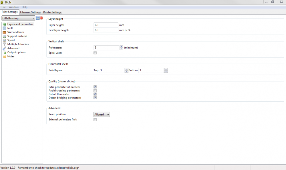 PLA - Température du plateau de première couche : 60° . vitesse à 30% , première couche à 0,3 de haut. T° tête : 205°