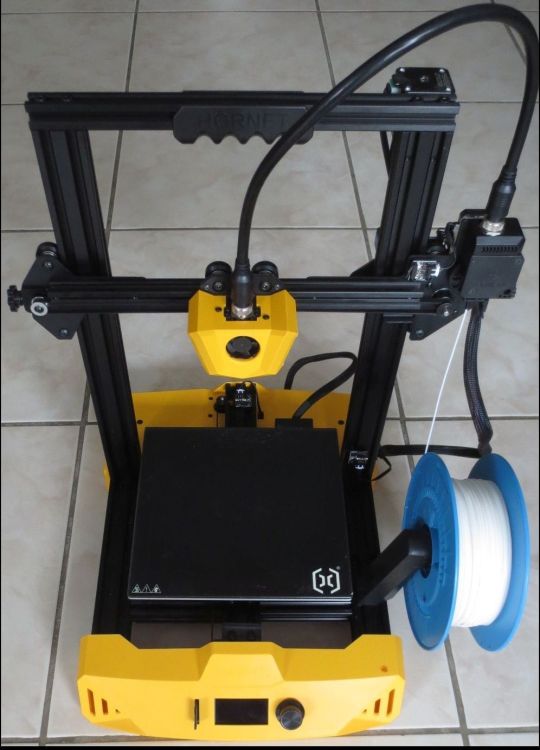 Imprimante 3D ARTILLERY HORNET achetée en octobre 2022 vendue complète : câble, notice, 2 roulements supplémentaires, un capteur de fin de course supplémentaire, une carte mémoire avec fichiers de base (et un lecteur de carte), une buse supplémentaire. caractéristiques : plateau chauffant ultrabase jusqu'à 130°C; volume d'impression : 22x22x25 cm; support bobines de filament; buse de 0,4mm; vitesse d'impression : 80mm/s; reprise d'impression après coupure,... le rouleau de filament blanc n'est pas compris. fonctionne très bien, silencieuse. revendue pour achat d'une FLSUN Super Racer Livraison possible ou remise en main propre Si intéressé, voir annonce leboncoin ou mp Lien : https://www.leboncoin.fr/informatique/2396422845.htm