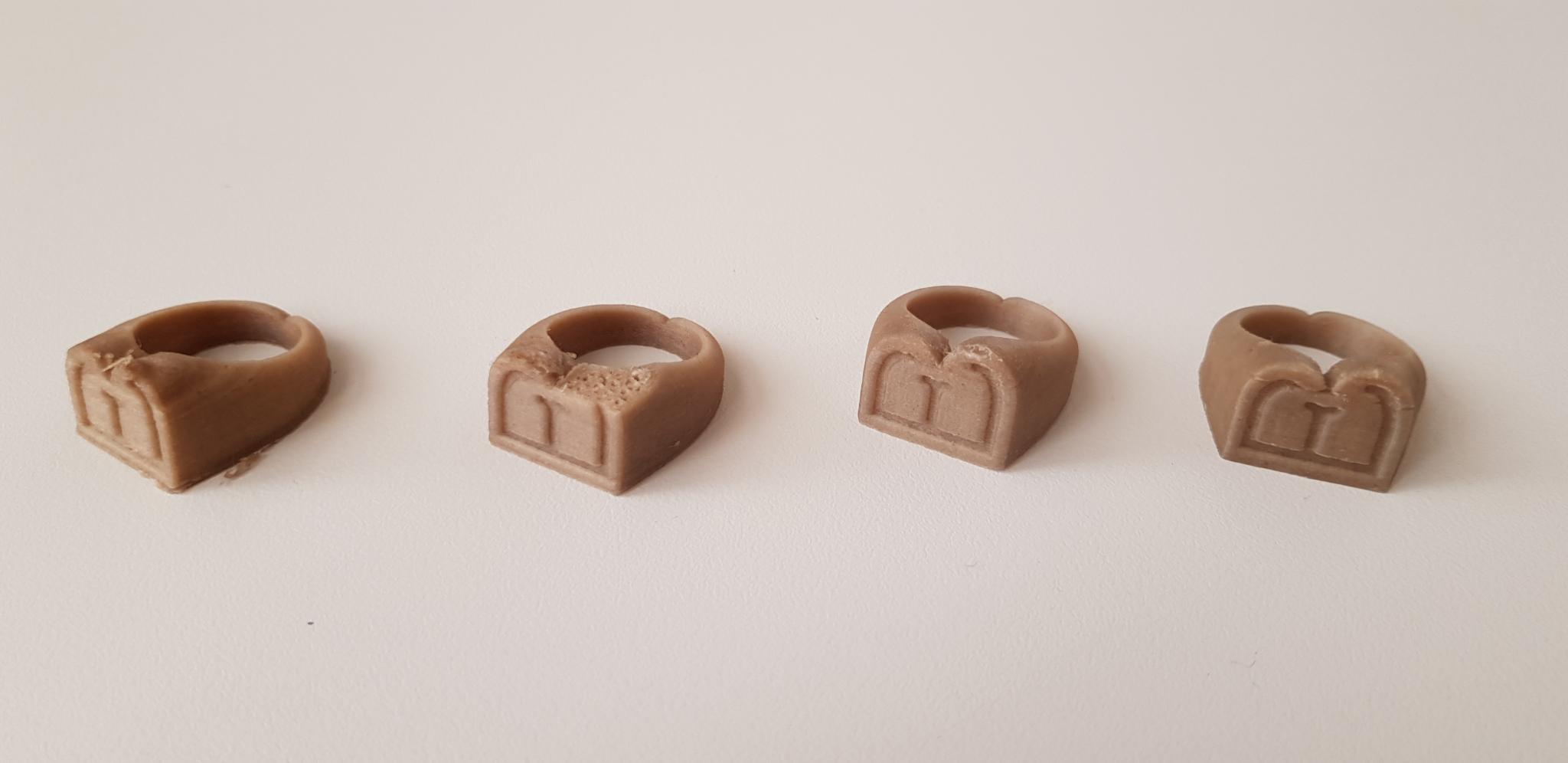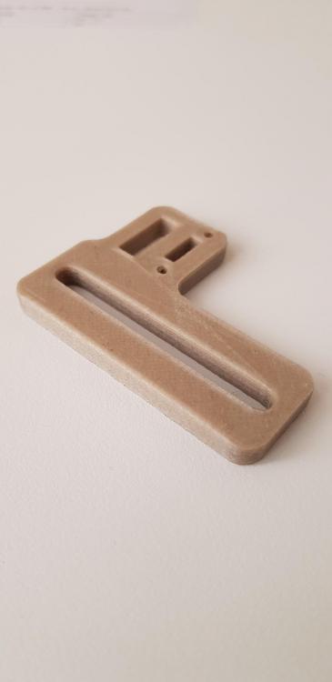 Hello à tous, Petit retour d’expérience sur un échantillon de filament fournis par @filament-abs.fr lors de ma dernière commande. Le filament en question est le Flax Optimus (un pla), il est vendu comme un pla léger, simple à imprimer et plus solide que l'abs. C'est un filament chargé au lin avec comme recommandation d'impression : Température de buse : 210° à 260° Température du lit : 20° à 70° Vitesse : 50 ms à 70 ms. Premier constat sur le filament, il n'est pas lisse : Premier print lancé: Température de buse : 230° Température du lit : 60° Vitesse : 70ms Couches : 0,1 Remplissage : 80% Aucun soucis lors de l'impression, on distingue juste sur un bord (partie arrondie à droite en haut sur le seconde photo) que la première couche à un peu merdouillé, mais rien qui demande à refaire un print. Histoire de tester un peu plus le filament, j'ai lancé une série en variant uniquement la température : Température de buse de gauche à droite : 260° / 230° / 220° / 190° Température du lit : 60° Vitesse : 70ms Couches : 0,06 Remplissage : 70% J'ai eu sur tous les tirages le même soucis au même endroit, là ou sur la seconde un bout est parti, il y eu une couche mal faite (étant donné que c'est sur tous les prints, je ne pense pas que cela soit du fait du filament). On constate néanmoins sur les trois tirages de gauche que la partie arrondie la plus haute à fondu, je pense qu ce filament n'est pas adapté pour ce rapport vitesse / température / précision. Il est drôle de constater la différence de nuance entre celle à 260° et celle à 190°. En plus gros celle à 190° : Voilà, en bref, un filament qui tient sa promesse, il est simple à imprimer et pour la première pièce faite, on sent en effet que c'est plus résistant qu'un simple pla (en torsion en tous cas). Lien vers la boutique : https://www.filament-abs.fr/produit/pla-flax-optimus/