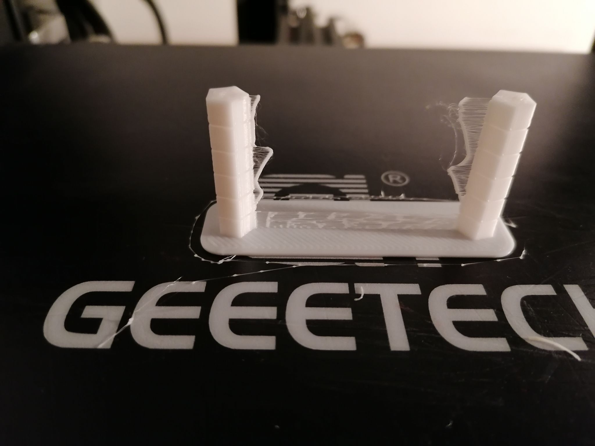 Bonjour tout le monde, J'ai fait l'acquisition récemment d'une Geeetech A20M d'occasion, ce qui a été fait dessus : - changement du hotend et mise en place d'une buse de 0.4 - calibration du flow - calibration des e-steps - calibration du bed J'utilise du PLA blanc de chez Sunlu, et l'imprimante est une bowden. J'ai fait de noooombreux tests de tour de températures et de tour de rétraction (https://teachingtechyt.github.io/calibration.html#retraction), mais j'ai toujours des cheveux d'ange sur mes pièces. Voici un de mes tests avec comme paramètres : - distance de retraction : 6mm - vitesse de retraction : 70mm/s - hauteur de couche : 0.16mm - température de la buse : 195°C - température du bed : 70°C Et la tour de retraction générée depuis le site : Nozzle diameter: 0.4 mm Layer height: 0.16 mm Base feedrate: 60 mm/sec Perimeters: 36 mm/sec Solid infill: 48 mm/sec Travel moves: 100 mm/sec First layer: 30 mm/sec Temperatures: Bed: 70 deg C Hot end: 200 deg C Segment | Retraction distance | Retraction speed | Extra restart distance | Unretract speed | Z hop F | 9 mm | 70 mm/sec | 0 mm | 40 mm/sec | 0 mm E | 8 mm | 70 mm/sec | 0 mm | 40 mm/sec | 0 mm D | 7 mm | 70 mm/sec | 0 mm | 40 mm/sec | 0 mm C | 6 mm | 70 mm/sec | 0 mm | 40 mm/sec | 0 mm B | 5 mm | 70 mm/sec | 0 mm | 40 mm/sec | 0 mm A | 4 mm | 70 mm/sec | 0 mm | 40 mm/sec | 0 mm Pour les paramètres globaux je suis parti sur ceux de cette vidéo : https://www.youtube.com/watch?v=WVQBMaiN6CQ Merci et bonne soirée !